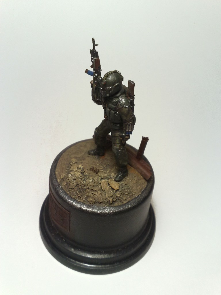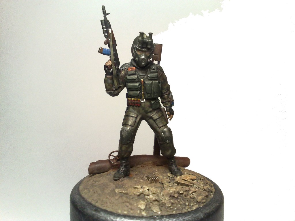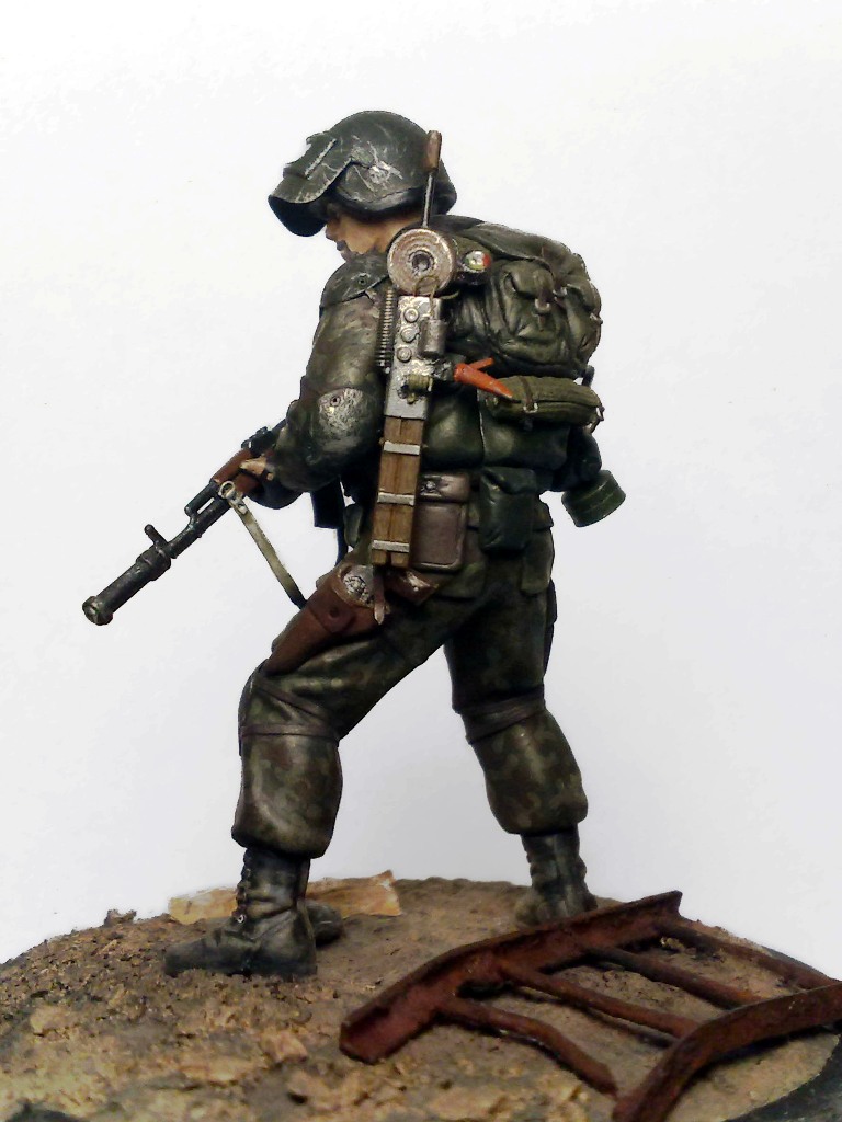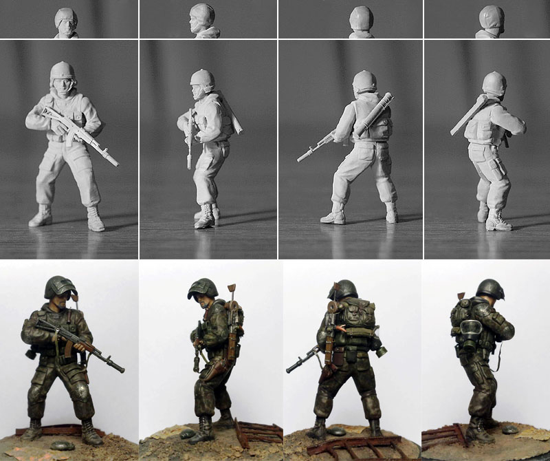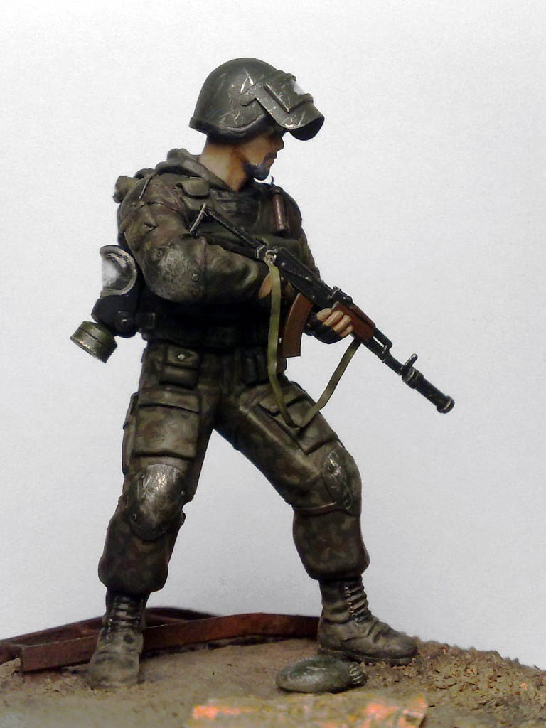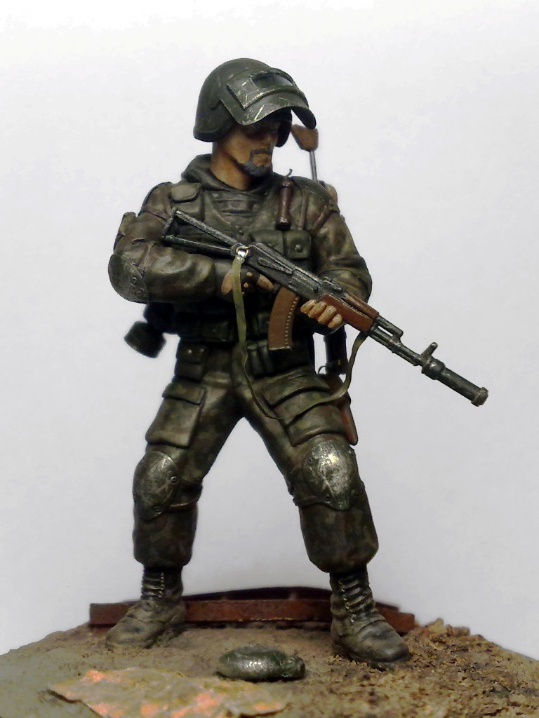 При создании использовались 2 фигуры из набора "Звезды" Российский спецназ №1 1:35 - боец с автоматом с подствольником и голова от гранатометчика.