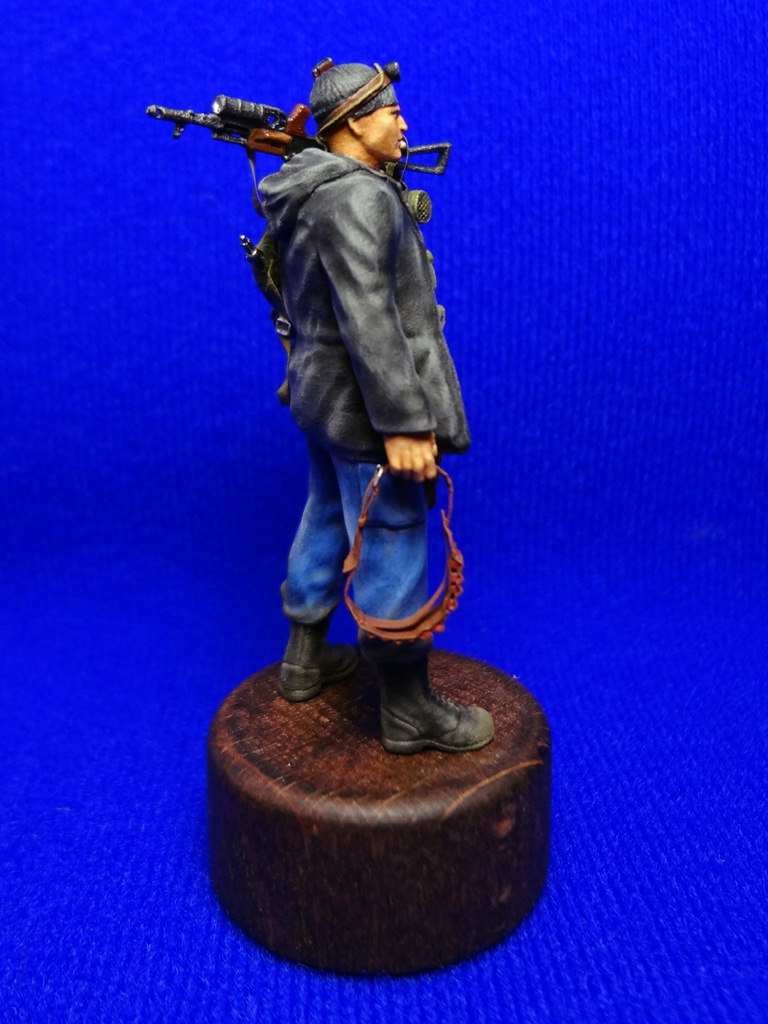 Вообщем описывать особо нечего, набор Афганцев от Звезды очень порадовал качеством. Изменил положение левой руки, всунул вместо бинокля автомат, в левую вместо автомата - патронташ. Вместо каски слепил шапку с фонарем. Повесил респиратор, рюкзак и кабуру.