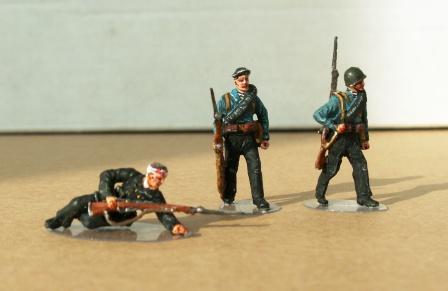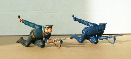 Фигурки скопировал из эпоксидки,так как с оригиналом работать трудно(полурезина,полупластик).На матросах долеплены брюки и срезаны рубахи до ремня,укорочены поля бескозырок.