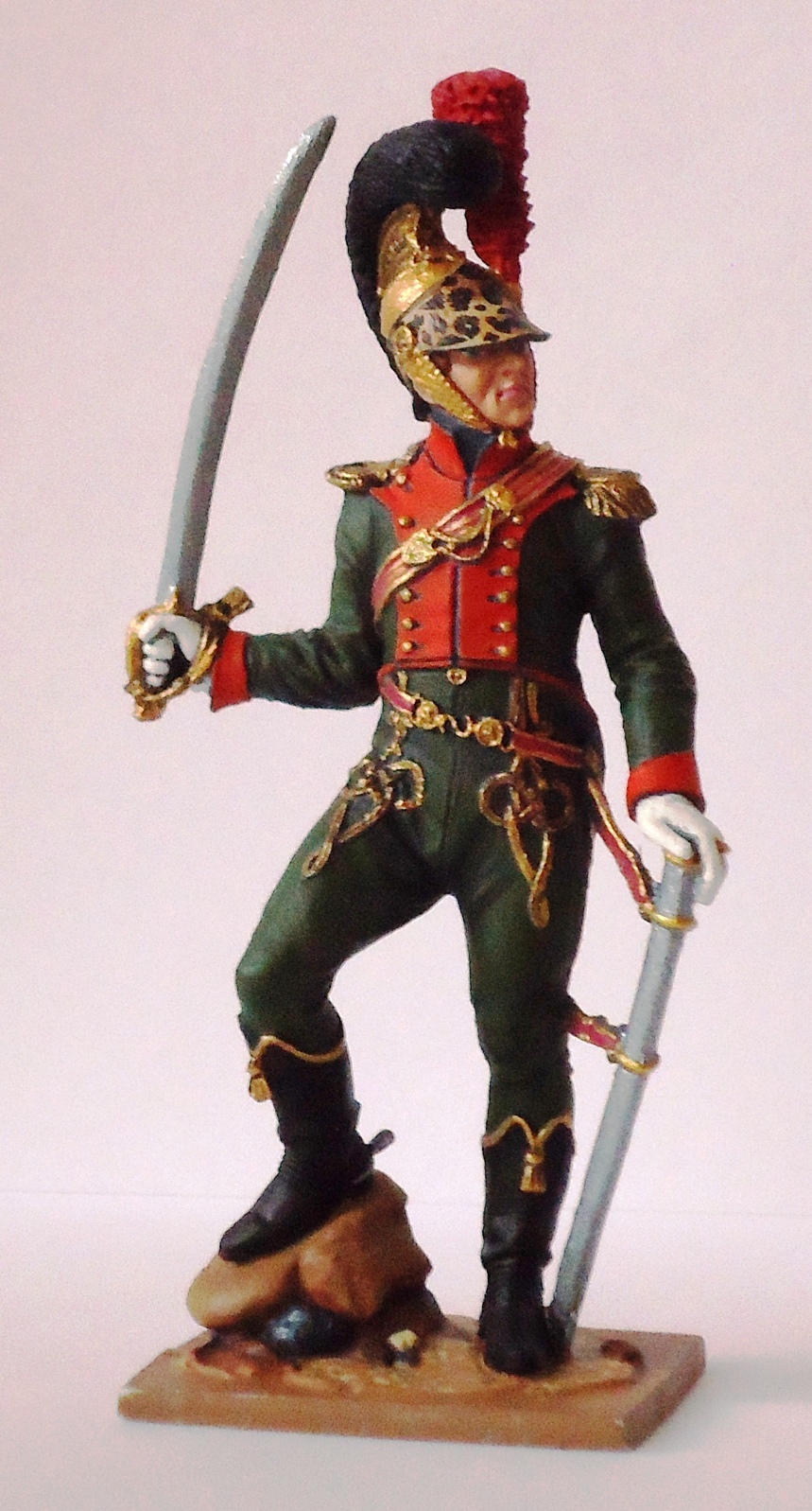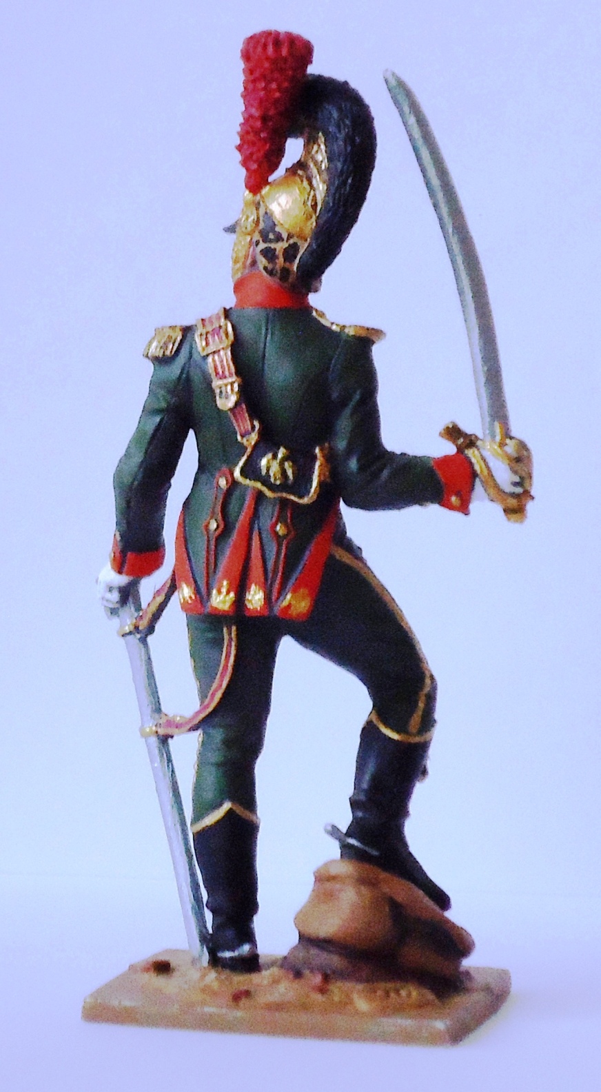 К сожалению ни планшетам Рeссело, ни рисункам Летина эта фигурка не соответствует, поскольку здесь на чакчирах скульптор вместо офицерских «пик» зачем-то сделал «узлы», как у рядовых шеволежеров.