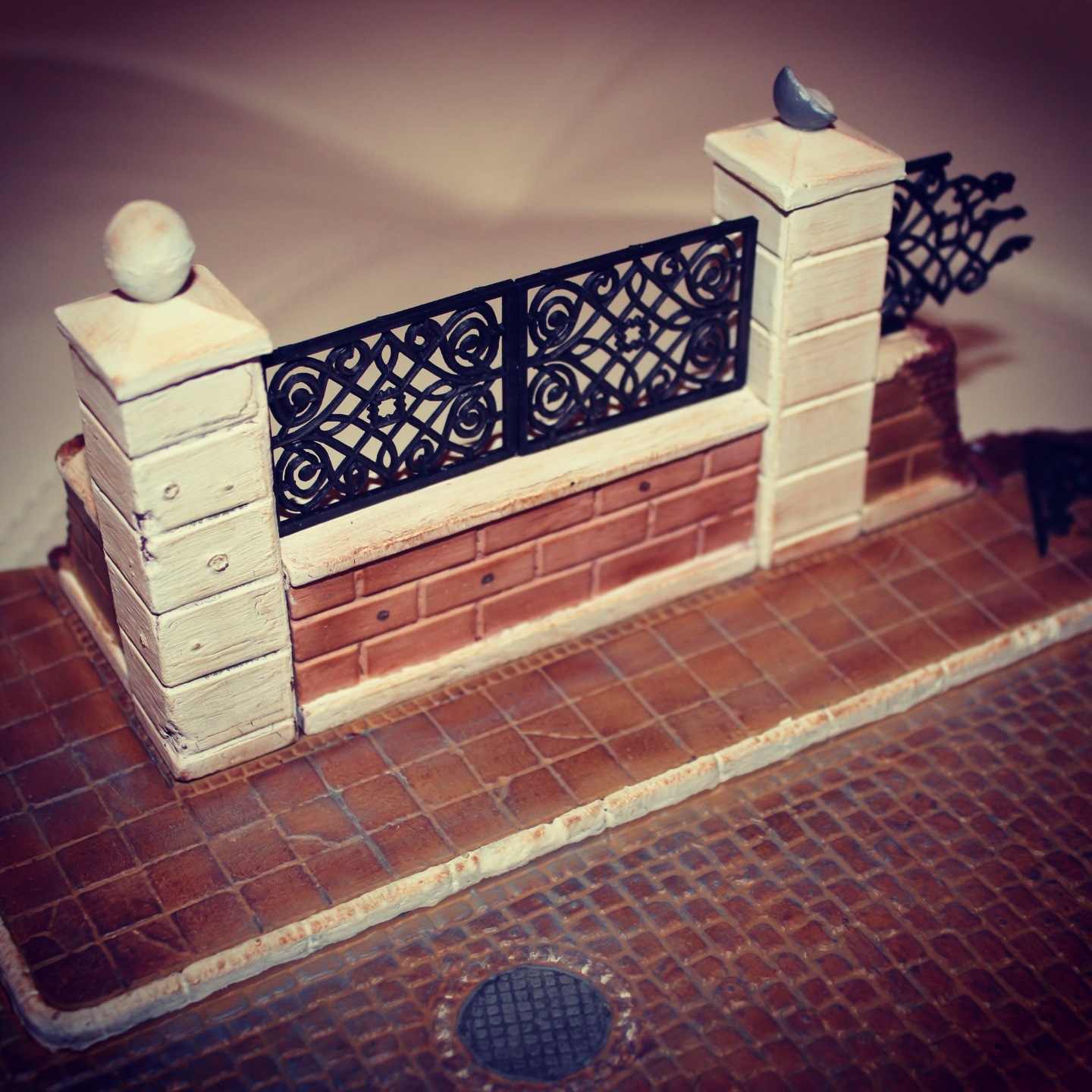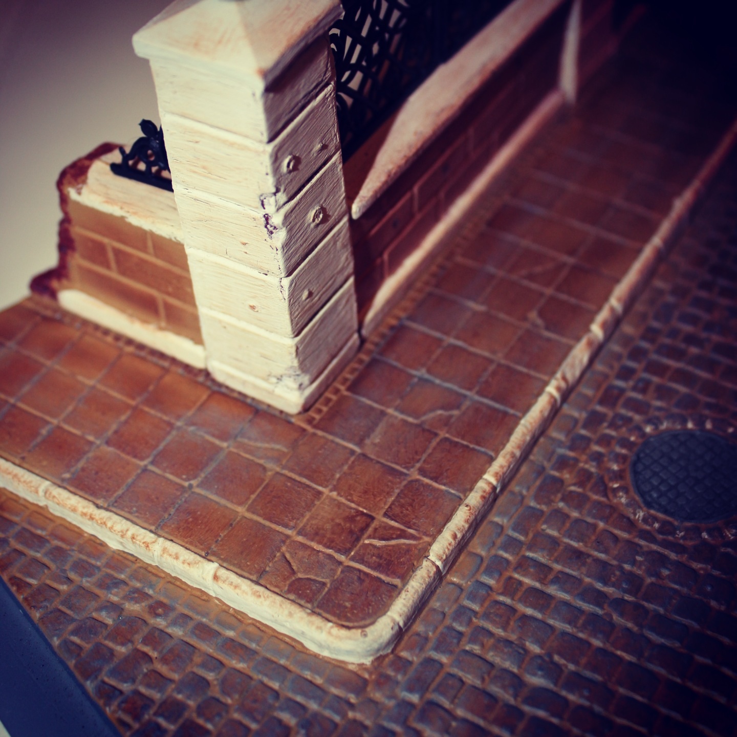 а так неплохо, но 1) почему плитка натёрта красным? 2) сломавшаяся решётка так сломаться не могла. "голова болеть не может. она же кость!" так и решётка же чугун. а он колется...