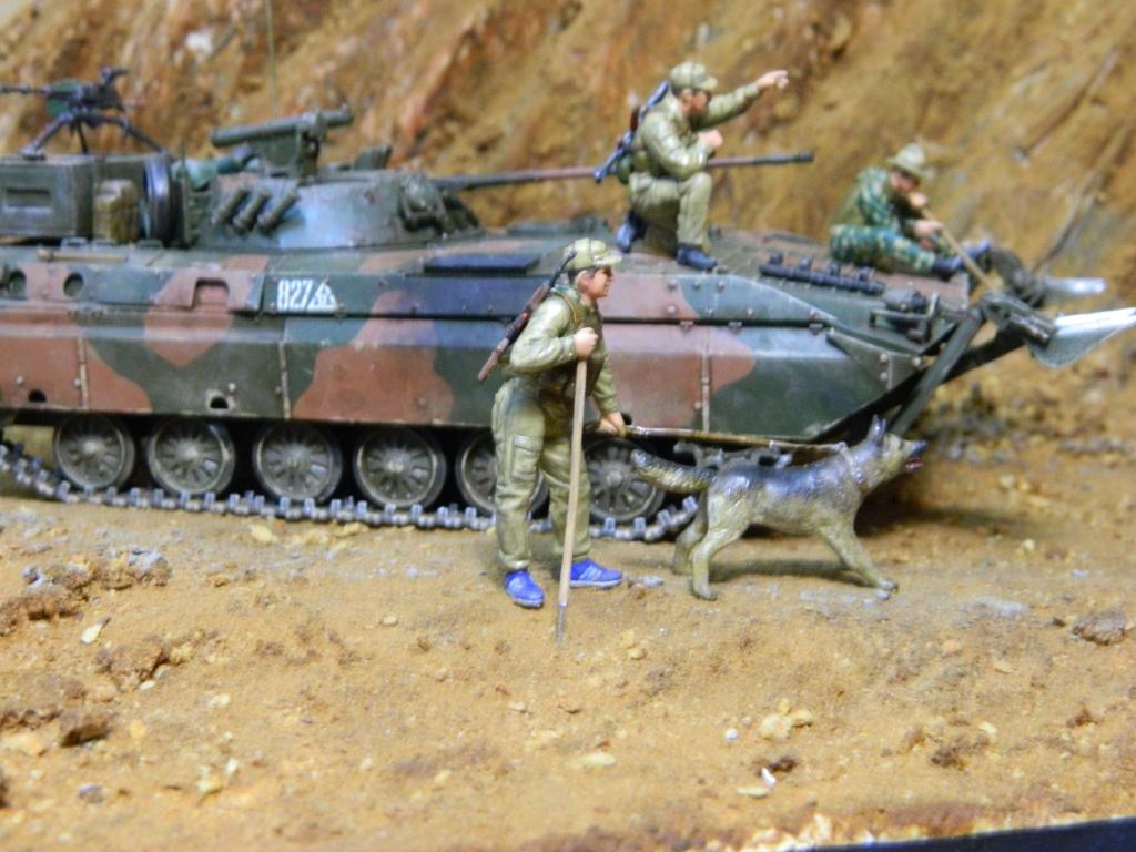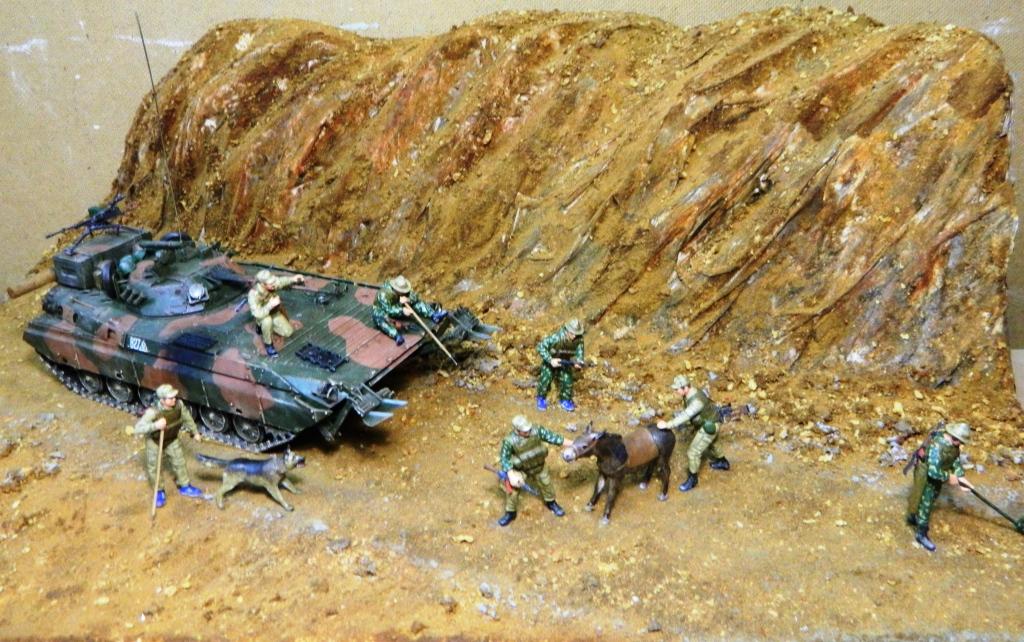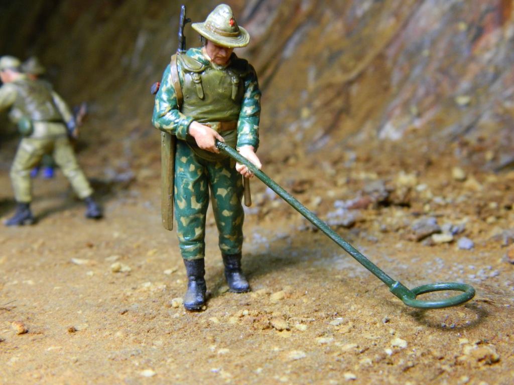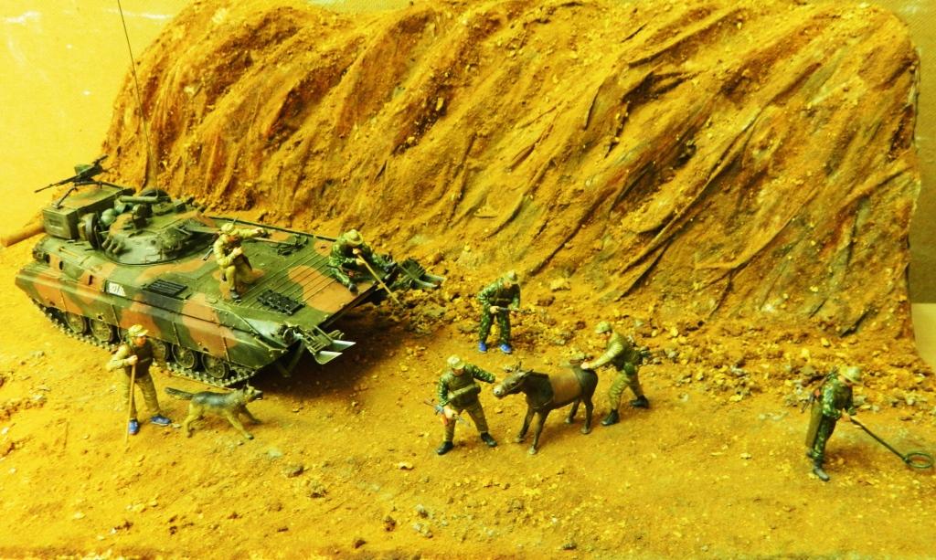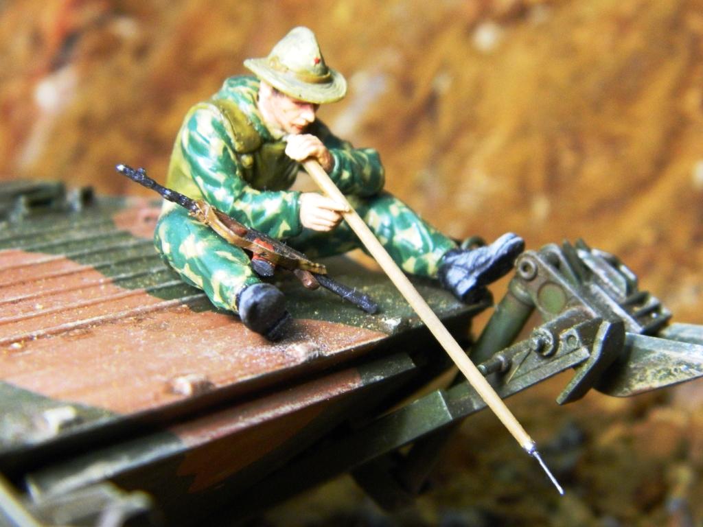 Приветствую, Александр! Диорама понравилась. Особенно сидящий с щупом на броне сапёр: молодой наверно, сомлел на жаре, забыл где находится, представляет себя на берегу речки... Специально делал или случайно так вышло? Образ замечательный.