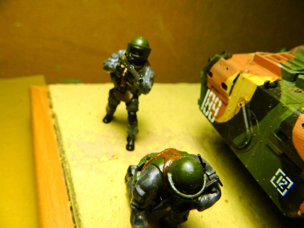 Была идея поставить рядом двухэтажный дом, имеющийся в наличии, но рядом с ним фигурки теряются. Дом - типа в качестве тренировочного объекта.Ну не знаю стена дома банально как-то и избитая тема, по-моему
