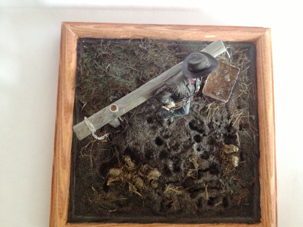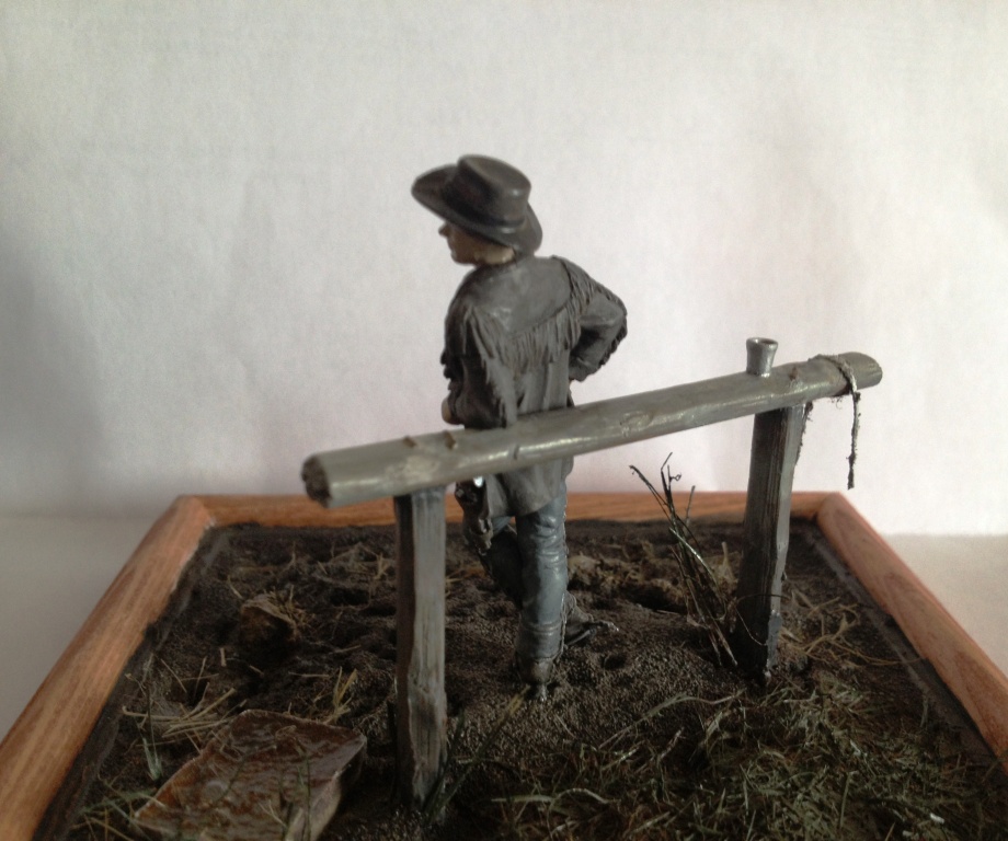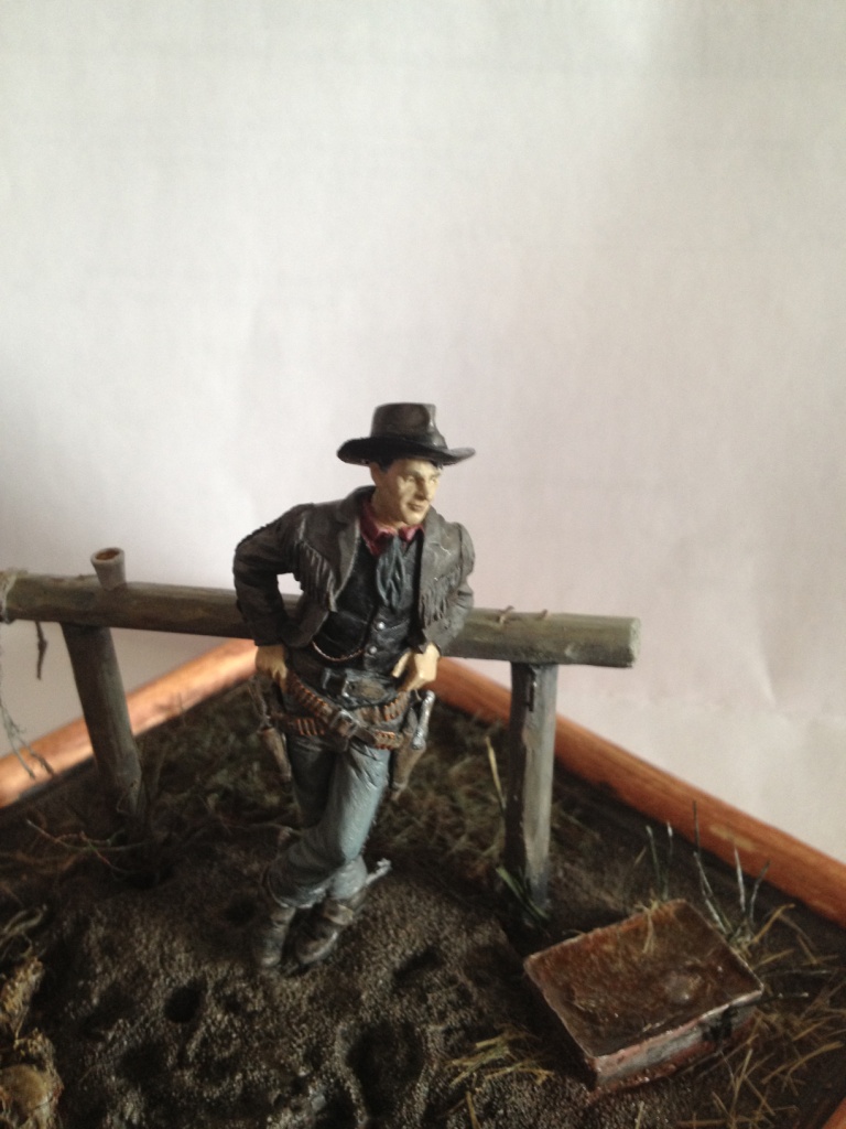 Пожалуй, любимая для меня тема - тема Дикого Запада. Ну и, увиденная случайно в магазине сборных моделей моего приятеля фигурка, напомнила о старой симпатии к жанру вестерна и сподвигла отложить на время фрицев и прочих персонажей второй мировой войны)Надеюсь, теперь не последняя моя работа в этом направлении.