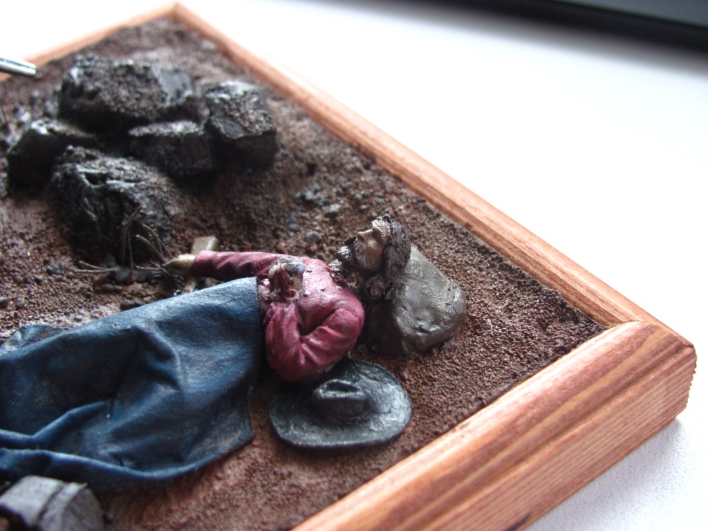 Основание выполнено из шпатлевки по дереву, просеянного речного песка, кусочков пенополистирола.