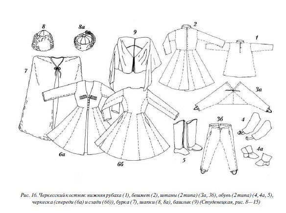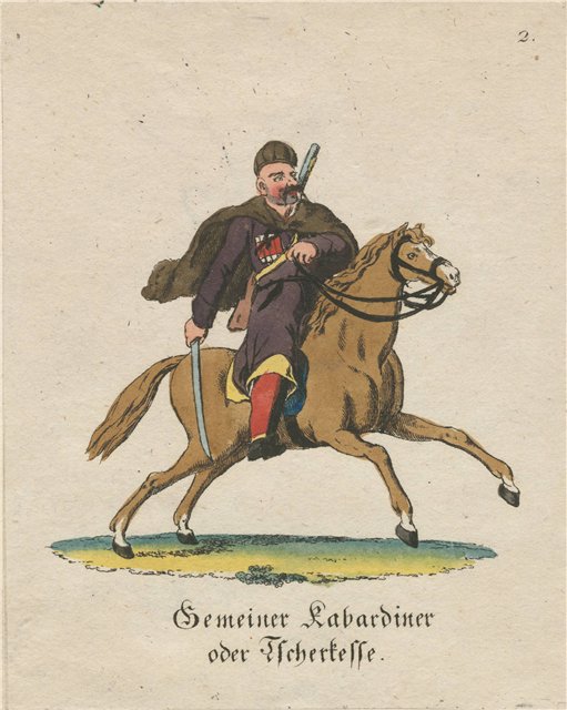 Что же касается продолжения наваливания сюда иллюстраций горцев уже даже не за 100, а за 200 лет, то не вопрос. Разумеется, можно надёргать отдельных деталей одежды из разных исторических периодов, смешать их на одной фигурке по своему вкусу, добавить что-то от себя, и получится именно то, что мы и видим здесь – «Черкес, XVIII-XX в.в.».