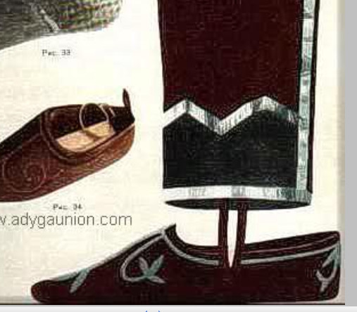 4- подошвы тут ни при чём. Просто горцы не носили такие сапоги, похожие на армейские. Их обувь - чувяки с ногавицами, или мягкие кожаные сапоги. И те, и другие шились с острыми носками, часто загнутыми вверх.