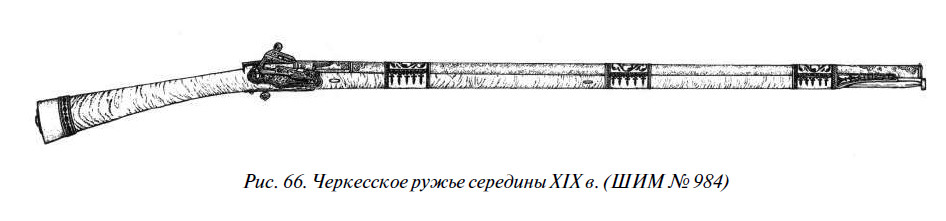 - пропорции ружья «черкесского» типа были иными – более изящный приклад, и более тонкие ствол и ложе.