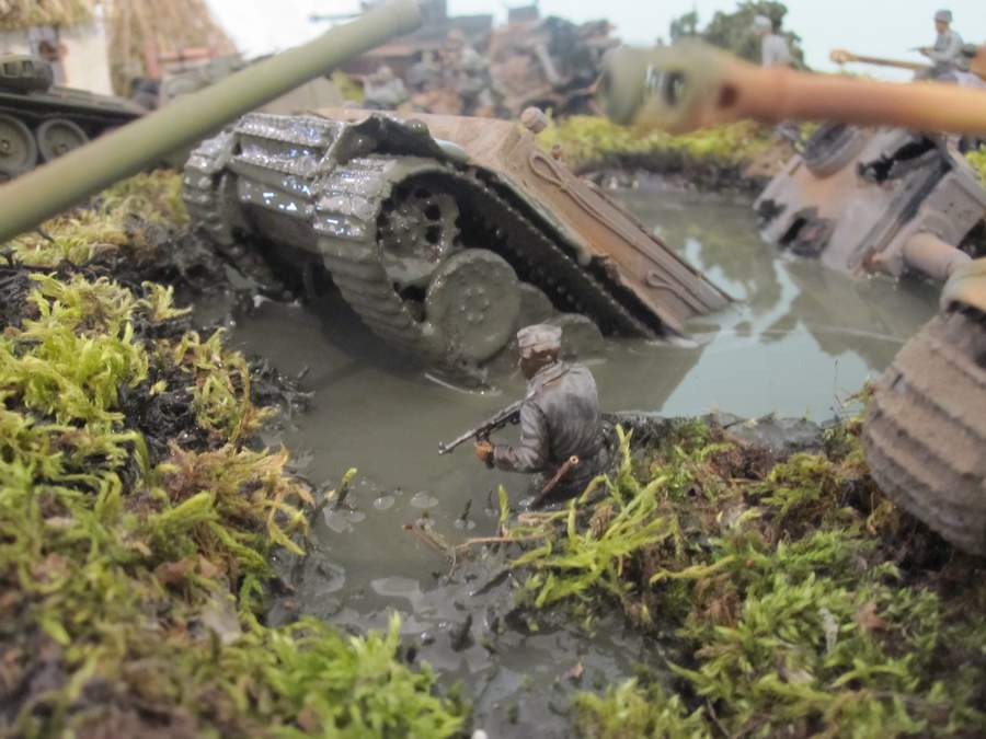 Просто мне непонятно: Вы ведь действительно можете делать неплохие диорамы! Тот же танк в болоте может стать отличной отдельной композицией. Вы не боитесь масштабов, мне кажется даже лёгкую провокацию можете себе позволить ( в хорошем смысле).Раз пять пересмотрел данную работу, прежде чем решился написать - ну есть в Вас потенциал, способности: а Вы вот так просто к своему же труду...