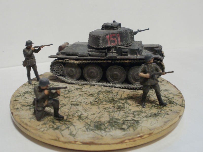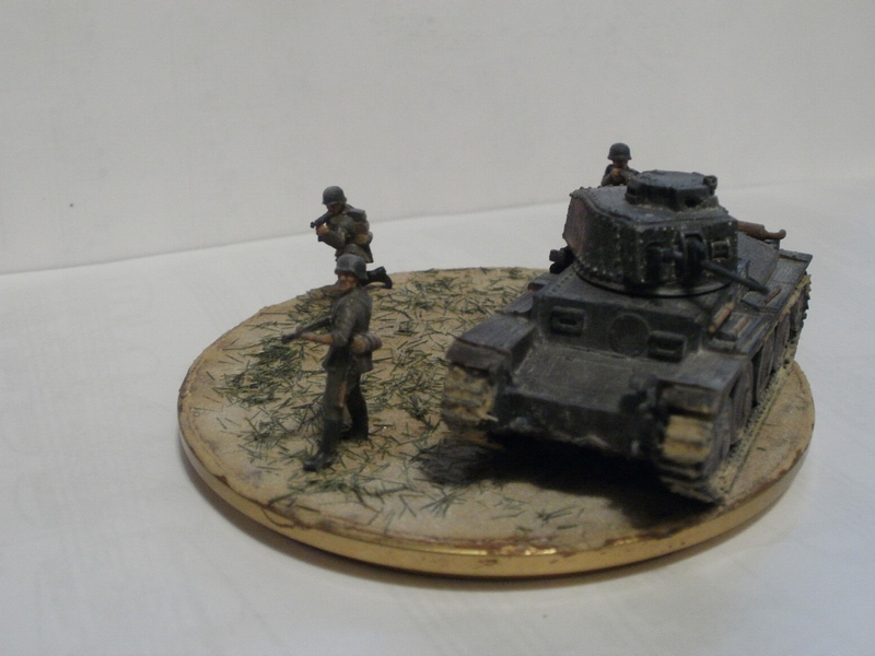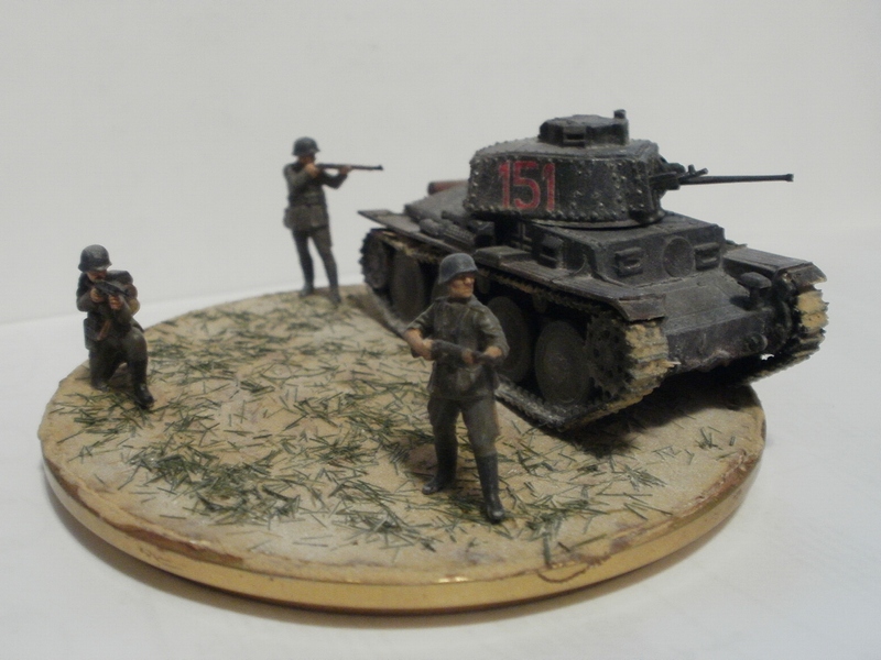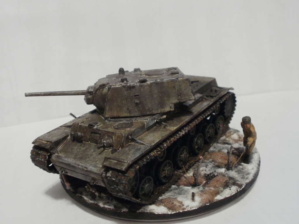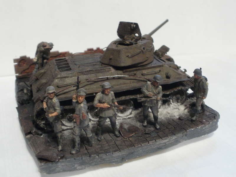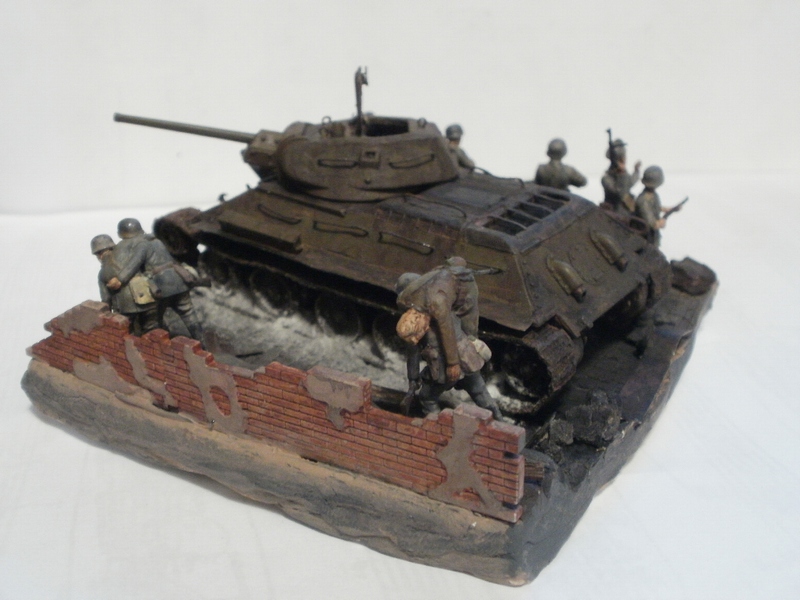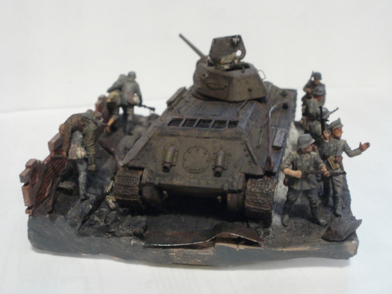 Денис Ашхацава Wrote:На мой взгляд фигурка бойца лишняя. Вроде и не противоречит по композиции, но какой-то он тут чужой. Танк на основании самодостаточен.