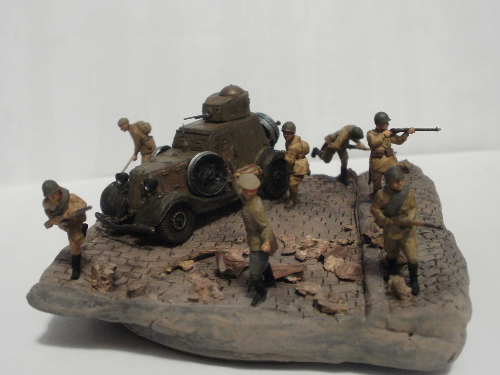 Денис Ашхацава Wrote:Не знаю как точно выразится: очень "уютная" что-ли работа, очаровала. Компактно и фигурки не мешаются, всё на месте, ни пустот нет, ни излишней толчеи. Бой в городе: раненых тащат с одной стороны, противника ждут с другой - атмосфера чувствуется.