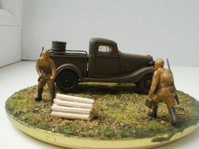 использовались наборы "Звезда" и UM, крышка от банки, шпатлевка, неудачная попытка изобразить разбросанное сено-конский волос, краски "звезда"