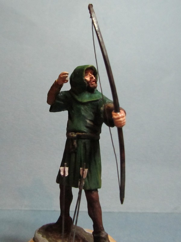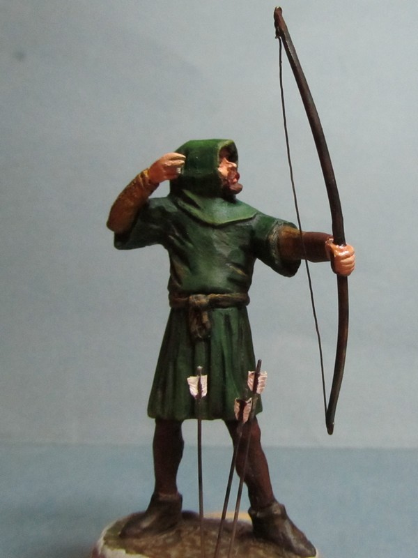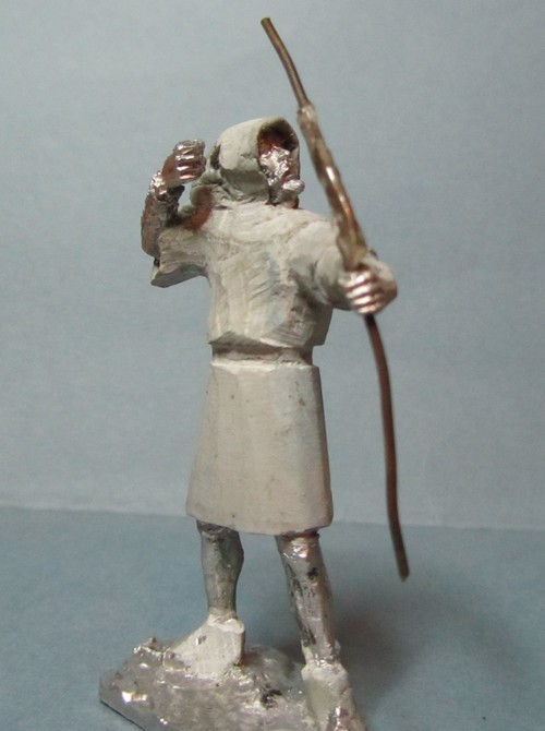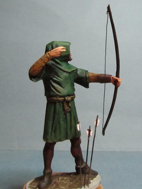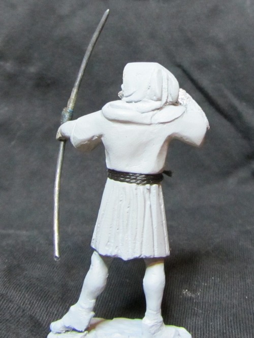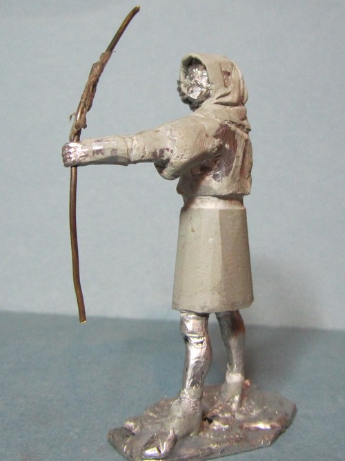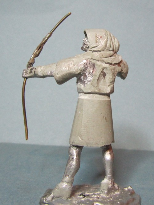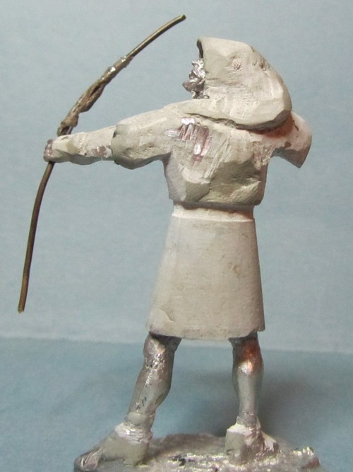 Интересная задумка! Пока трудно сказать за всю фигуру, но вот капюшон надо переделать: во-первых он очень велик сзади, а во-вторых возле шеи он не должен так плотно облегать голову, скорее "раздаться" в стороны. И ещё попробуйте ему распрямить пальцы на правой руке: стрелу-то он отпустил.