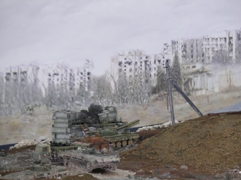 Диорама изготавливалась в очень короткие сроки, с июля 2013 года до 6 ноября 2013 года. В диораме использоваены наборы: "Звезда", ANT Miniatures, "Моделист". Строения и столбы изготовлены из гипса, водонапорная башня изготовлена из строительтной пены. Основание диорамы "жёлтый" пенопласт, покрыт ПВА с опилками, покрашена "Невским" акрилом, масляными красками.
