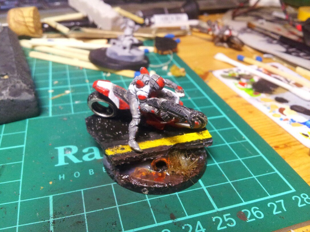 Материалы: стандартное основание из пластика, ПВХ, оргалит, рандомная толстостенная пластиковая трубочка. Трава из набора от Арми пеинтера