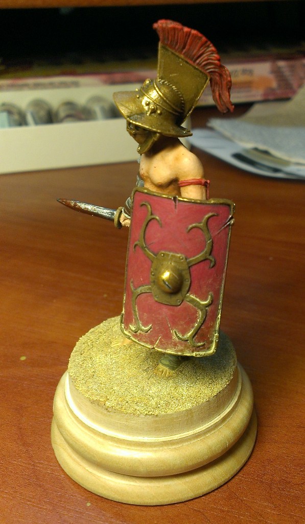 , старайтесь на коже играть контрастом (светлее-темнее), анатомически выделяйте мышцы - грудь, бицепс, трицепс, плечи и т.д. Черной маслянной краской наложите патину на шлем, прорези для лица затемните ну и т.д. и т.п. Успехов!!!!!!!!!