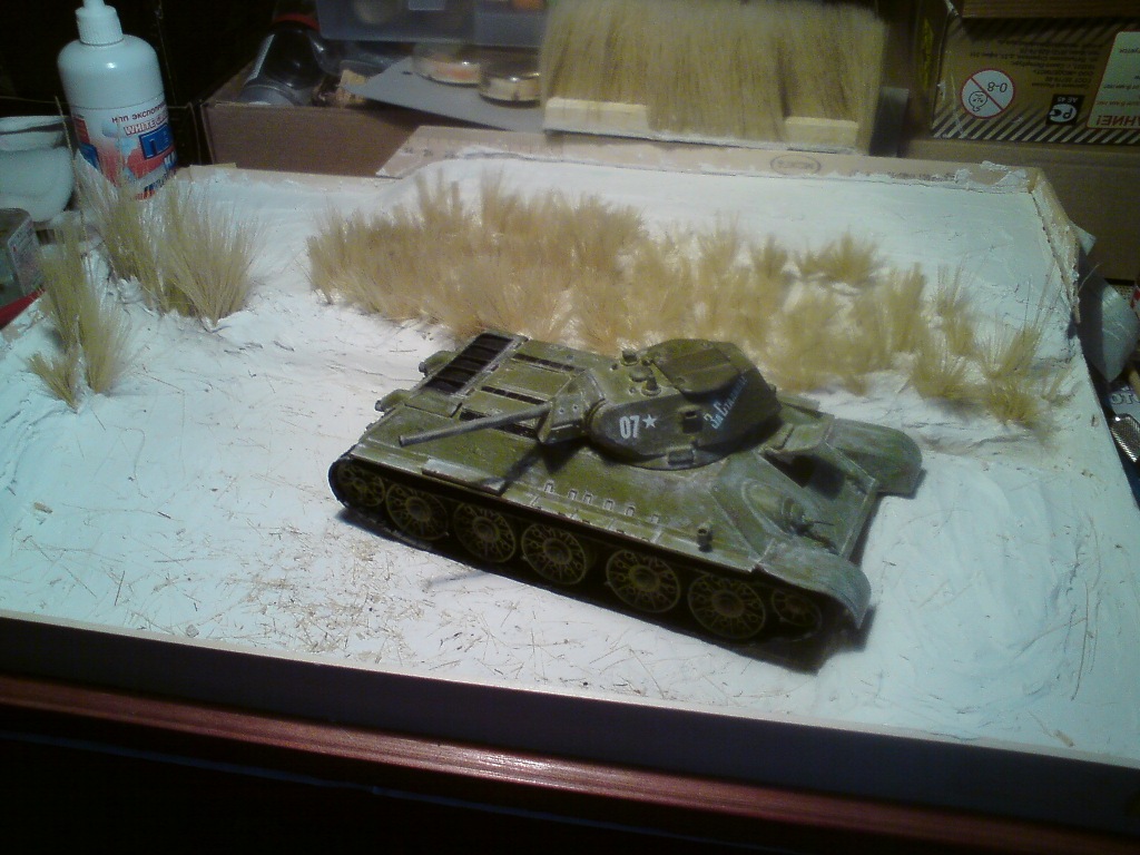Выношу на Ваш суд диораму, которую делал по фото времён ВОВ. Старался максимально сделать копийно сам танк. Обстановка вокруг танка - исключительно моя фантазия и возможности подручных средств.