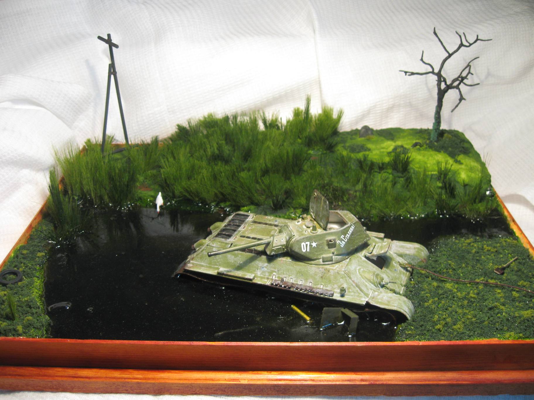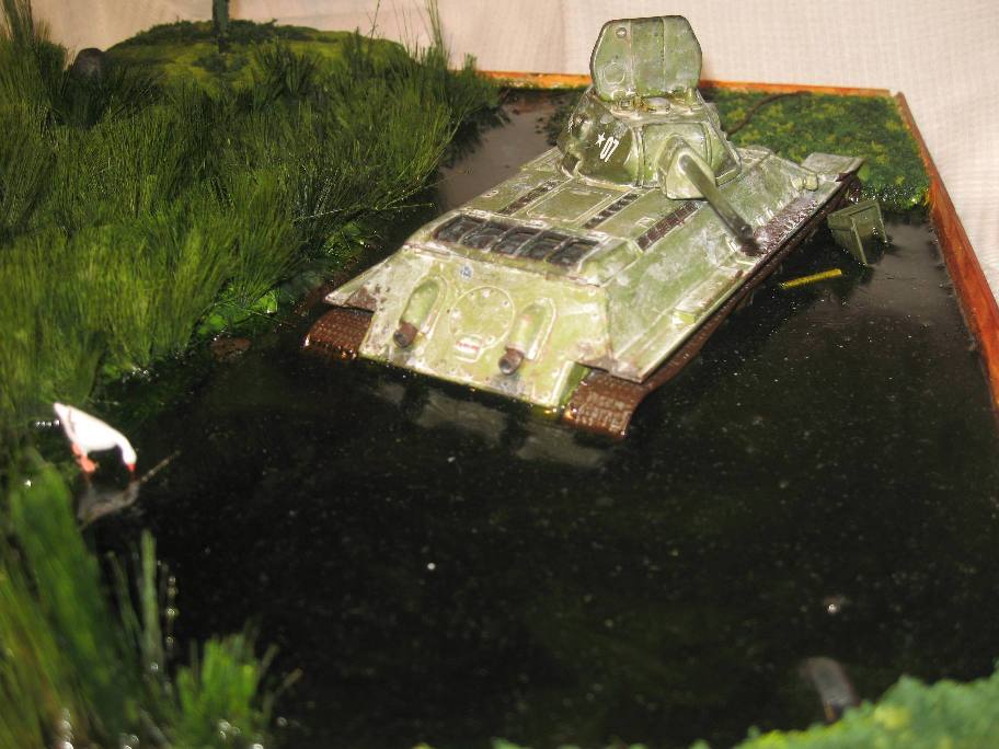 Видно много времени ушло на работу . Я не берусь за такие объемы. По моему не хватает живых людей , как-то скучно . Вода мне кажется темной и открытый люк механика - водителя показывает пустоту внутри танка . С ув.