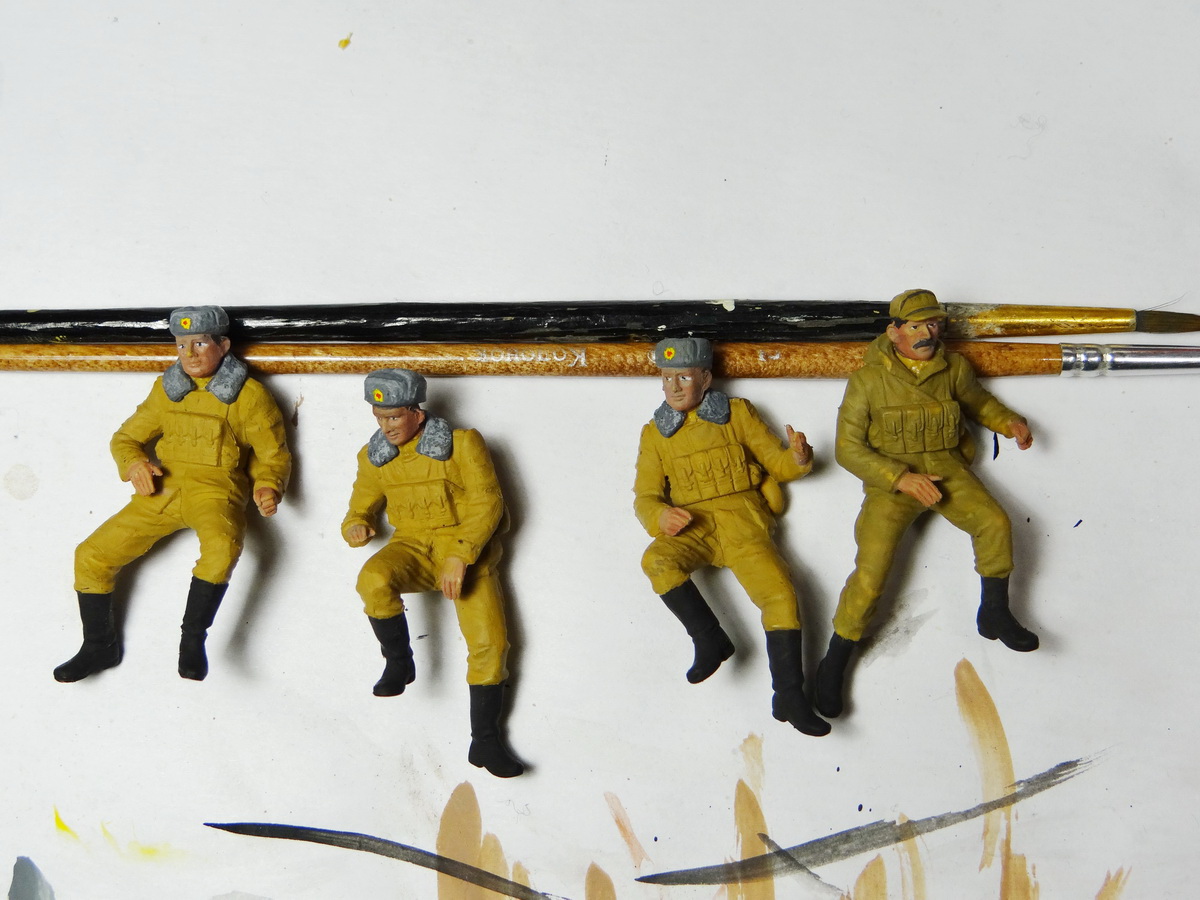 Загорелые десантники очень хорошо получились.БТР тоже покрашен профессионально. Основание интересное, сделано неплохо,только вот в некоторых местах, особенно в левом верхнем углу, пенопласт совсем уж явно виден,неровности напоминают обломок гранита, в центре скалы пузырьки маленькие, они, по-моему, выглядят не совсем естественно, но это уже совсем мелочь. Но в остальном работа отличная) Мне очень нравится) Афганская война - очень интересная тема, жалко только, что "душманов" не продают нигде. Не сделаешь диораму с полноценным боем, только если моджахедов самому лепить. Удачи в новых работах