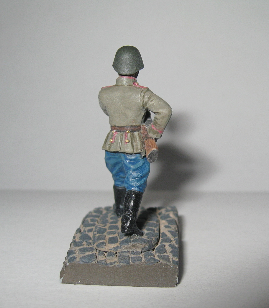 Только вот мундир, мне кажется, можно было бы по-ярче сделать, более зеленым. Лицо, по-моему, слишком бледноватое. Как я понял, у вас подставка на основании, ведь так? Выступ явно виден и смотрится некрасиво. Только прошу не сочтите мои слова неуважительными, но роспись лица немного напоминает зомби) Это дружеская критика. Я не в коем случае не хочу обидеть вас, это просто мое мнение. Я никогда не работал с таким масштабом, но представляю насколько это ювелирная работа) Возможно, лучше лицо сделать и не получится) С уважением) Удачи в новых работах
