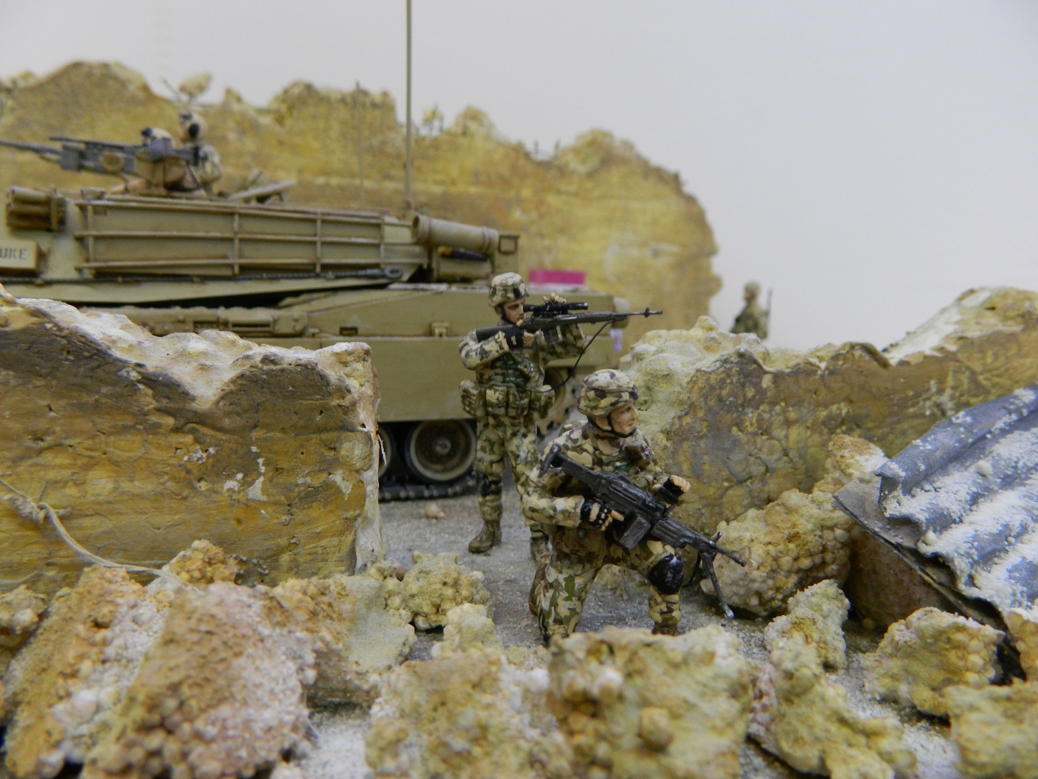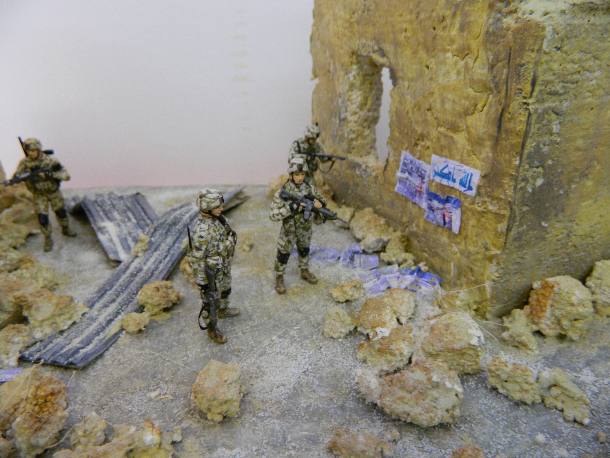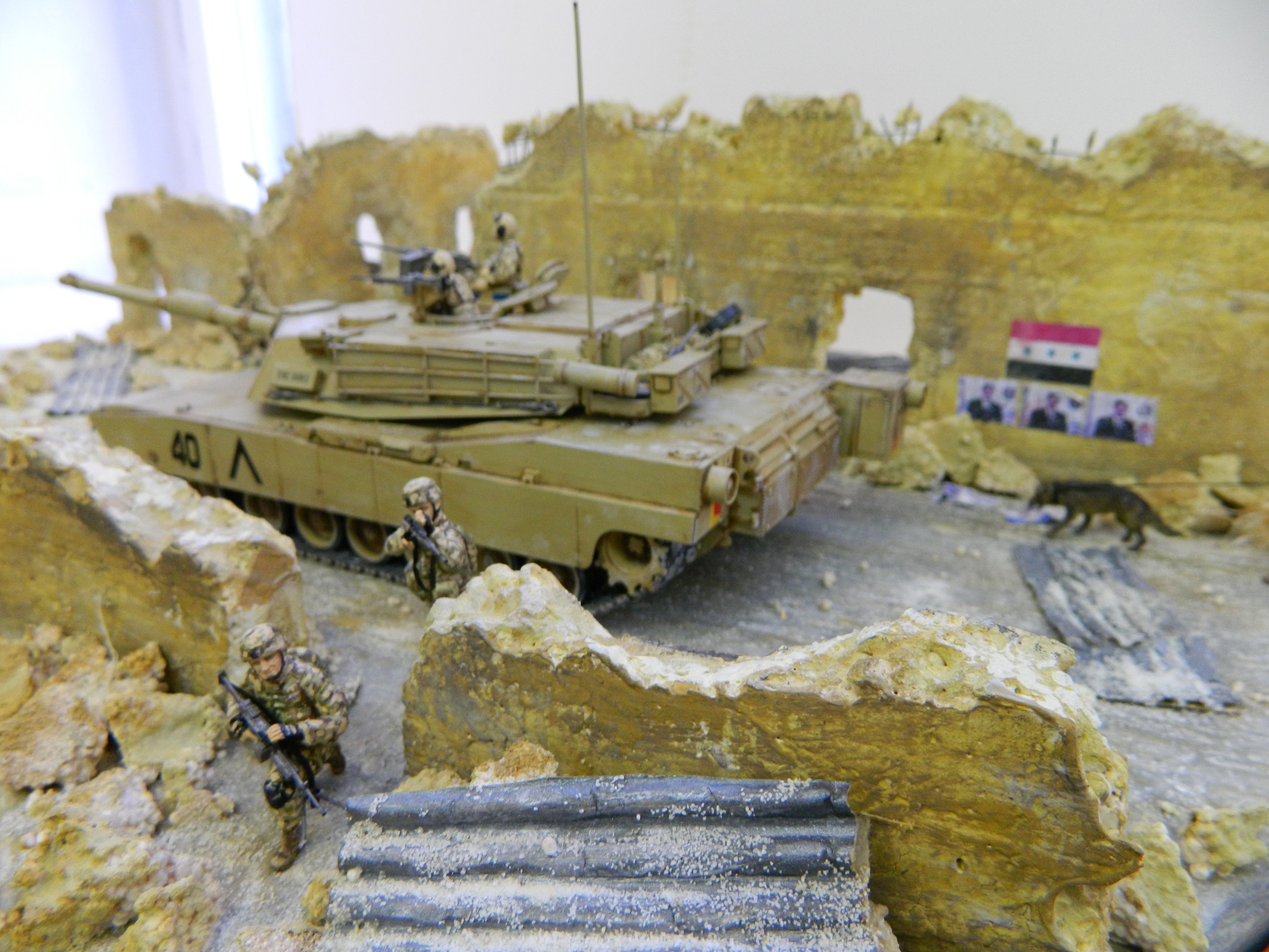 Вдохновился диорамой "Патрулирование окрестностей Багдада"и пока в разработке не завершена моя композиция "Иракская кампания". Фигурки от Мастербокс, танк "Абрамс" от Тамии. Остальные детали подручный материал, пенопласт , покрытый водоэмульсионкой и в некоторых местах пастой Тамия под песок, "шифер" из листов обыкновенной упаковки, разделенной пополам (в центре рельефная вставка есть.)Ну и ко всему прочему, регистрировался по новому Низиб - это Бизин моя работа "Оборона Сталинграда", кто-то уже наверное видел.