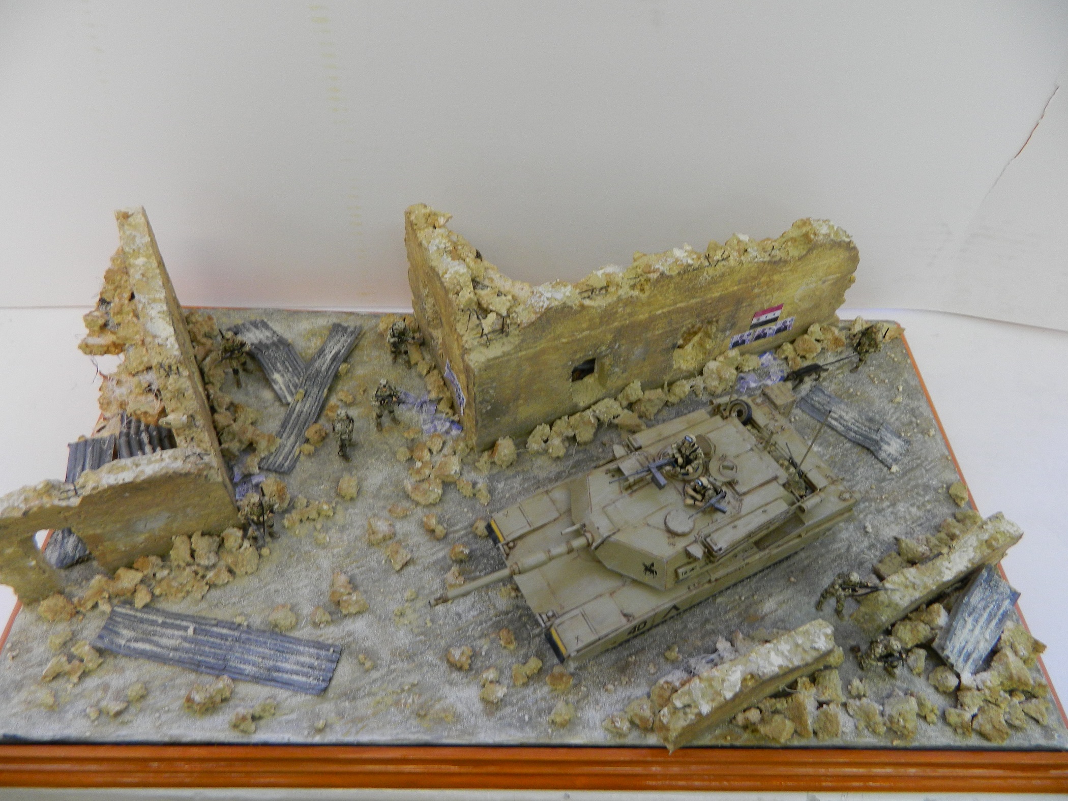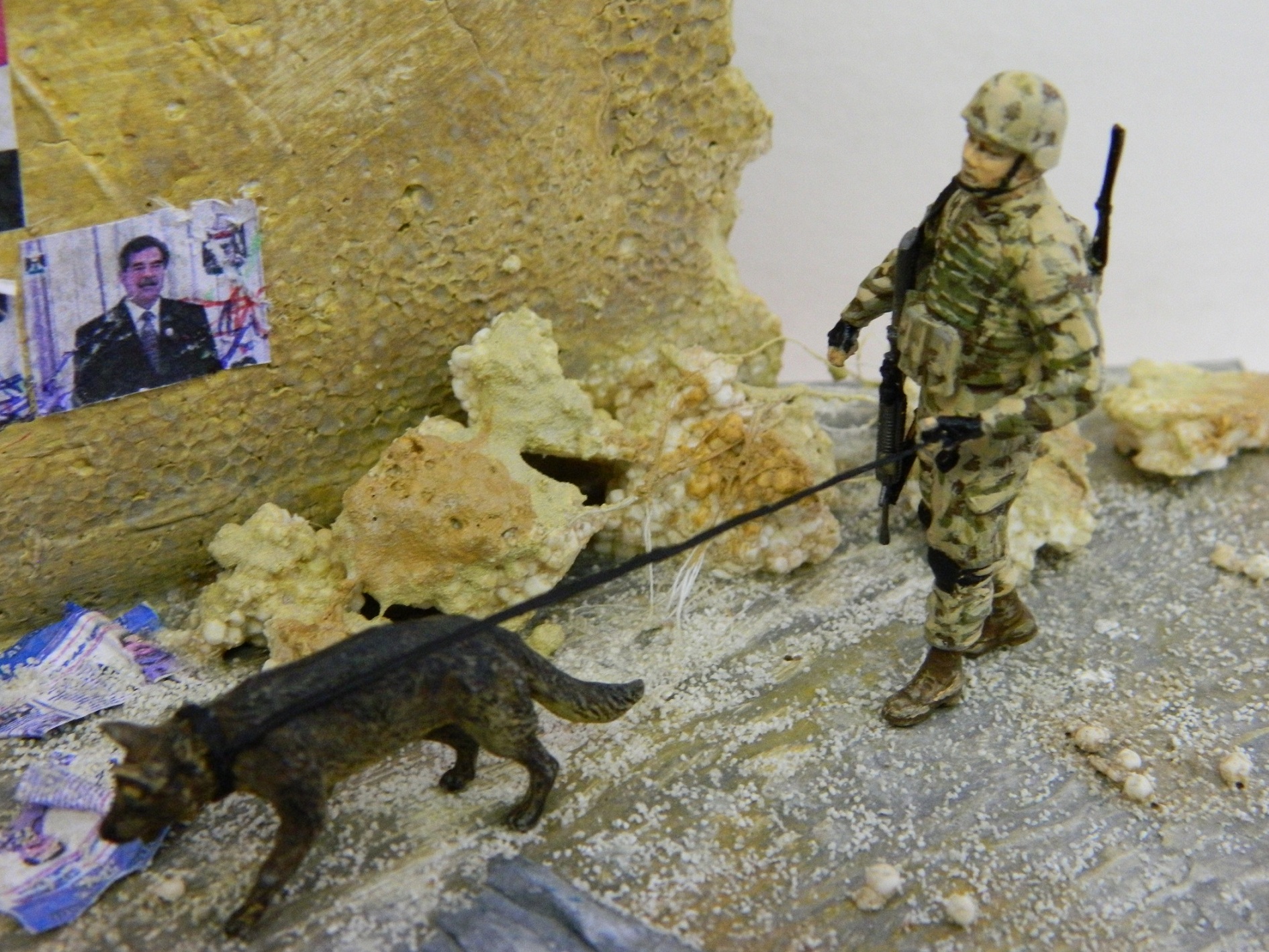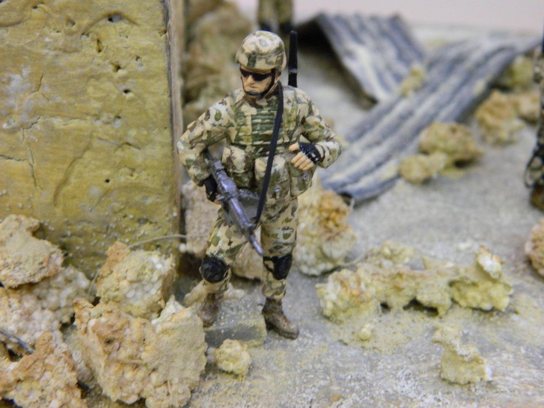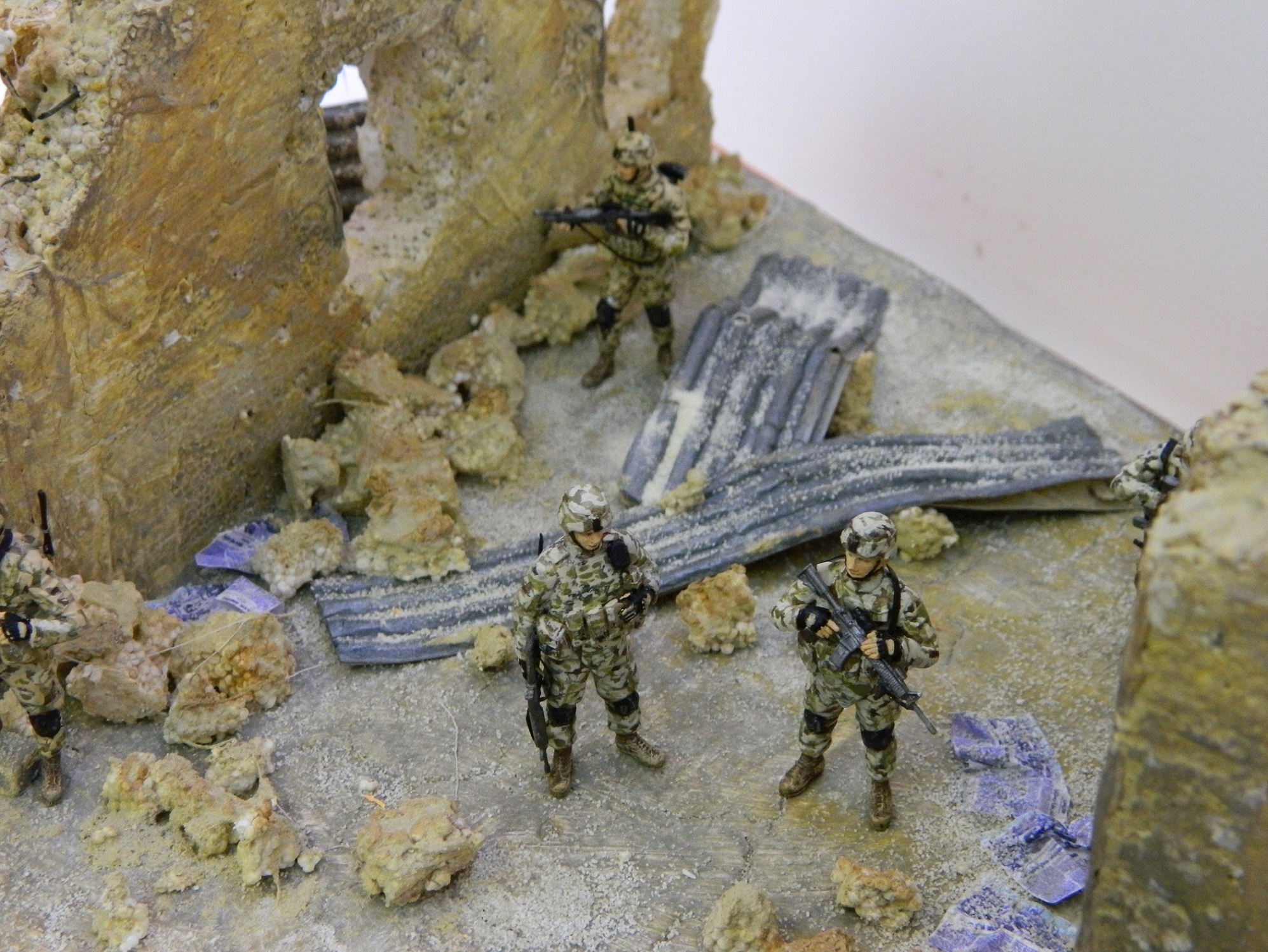 Вдохновился диорамой "Патрулирование окрестностей Багдада"и пока в разработке не завершена моя композиция "Иракская кампания". Фигурки от Мастербокс, танк "Абрамс" от Тамии. Остальные детали подручный материал, пенопласт , покрытый водоэмульсионкой и в некоторых местах пастой Тамия под песок, "шифер" из листов обыкновенной упаковки, разделенной пополам (в центре рельефная вставка есть.)Ну и ко всему прочему, регистрировался по новому Низиб - это Бизин моя работа "Оборона Сталинграда", кто-то уже наверное видел.