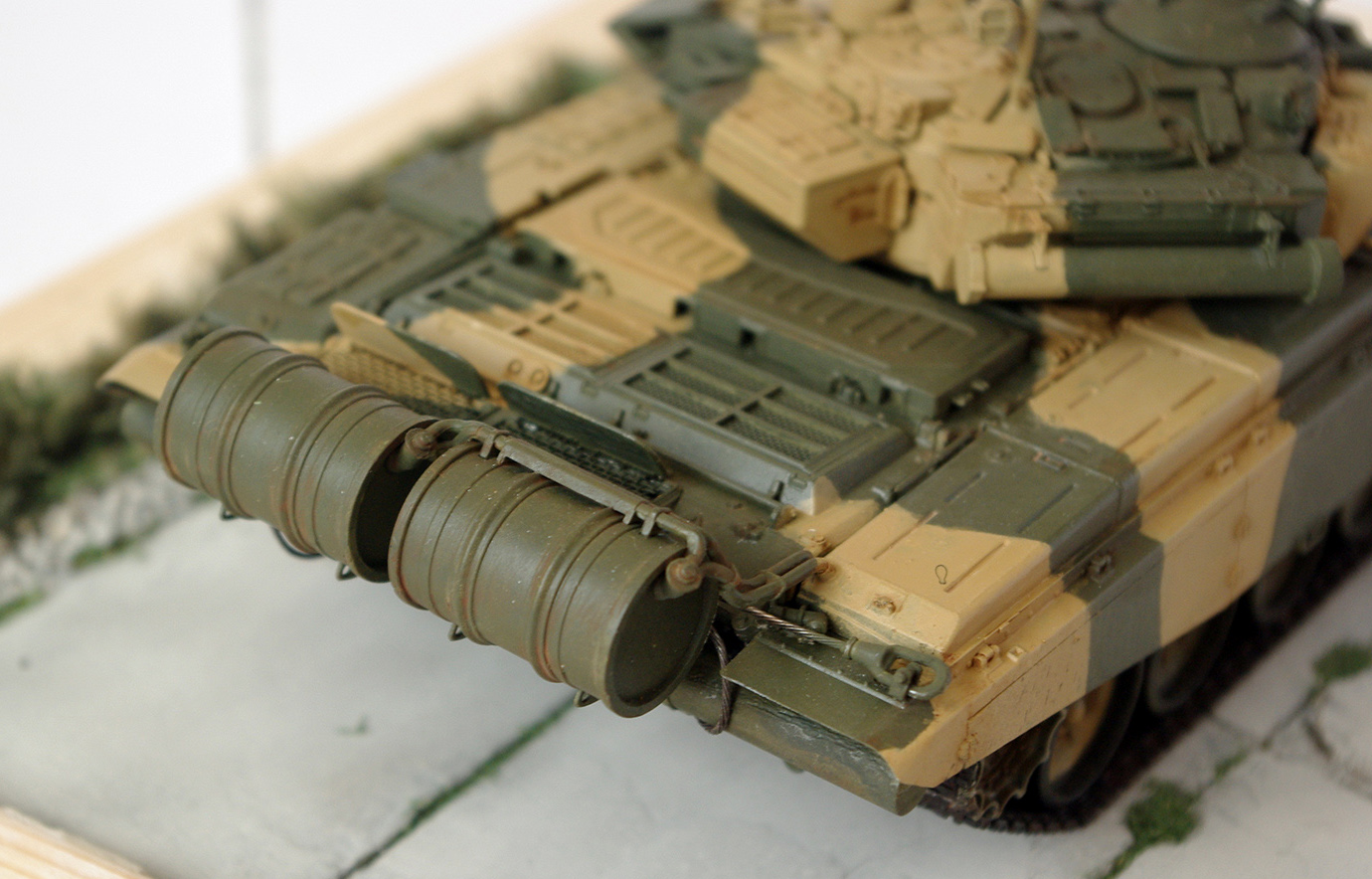 - похожеЗадумка была проста - изобразить современный танк т-90 на полигоне, как вариант на танковом биатлоне, поэтому легкая пыль и грязь на нем, и стоит он на бетонных плитах.