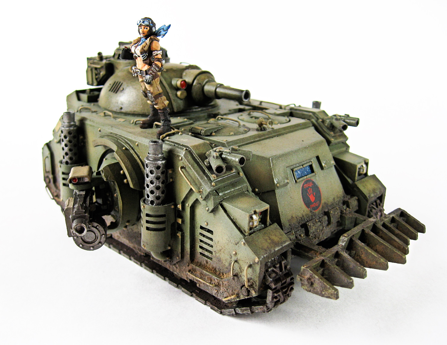 Здравствуйте. Вот склонил меня приятель к такой теме) Приобрел этот кит в компании Heresy Forge. Открыл пакеты и не захотел делать ваху. Вспомнилась книга Стругацких "Парень из преисподней". Так что получился батальон бронеходов ("Голубые Драконы") "Дочери Алая", организационно входившая в бригаду Гагрида, при выдвижении в устье Арихадны по рокаду, не попала под бомбовый удар. В результате сохранности матчасти и личного состава, блокировала продвижение подвижных подразделений имперцев, не допустив захвата узловых пунктов рокадной дороги в большой излучине. Следствием чего явилось нанесение последующего контудара и выход на оперативный простор войсковой группы генерала Дорра. Вот такая легенда)))
