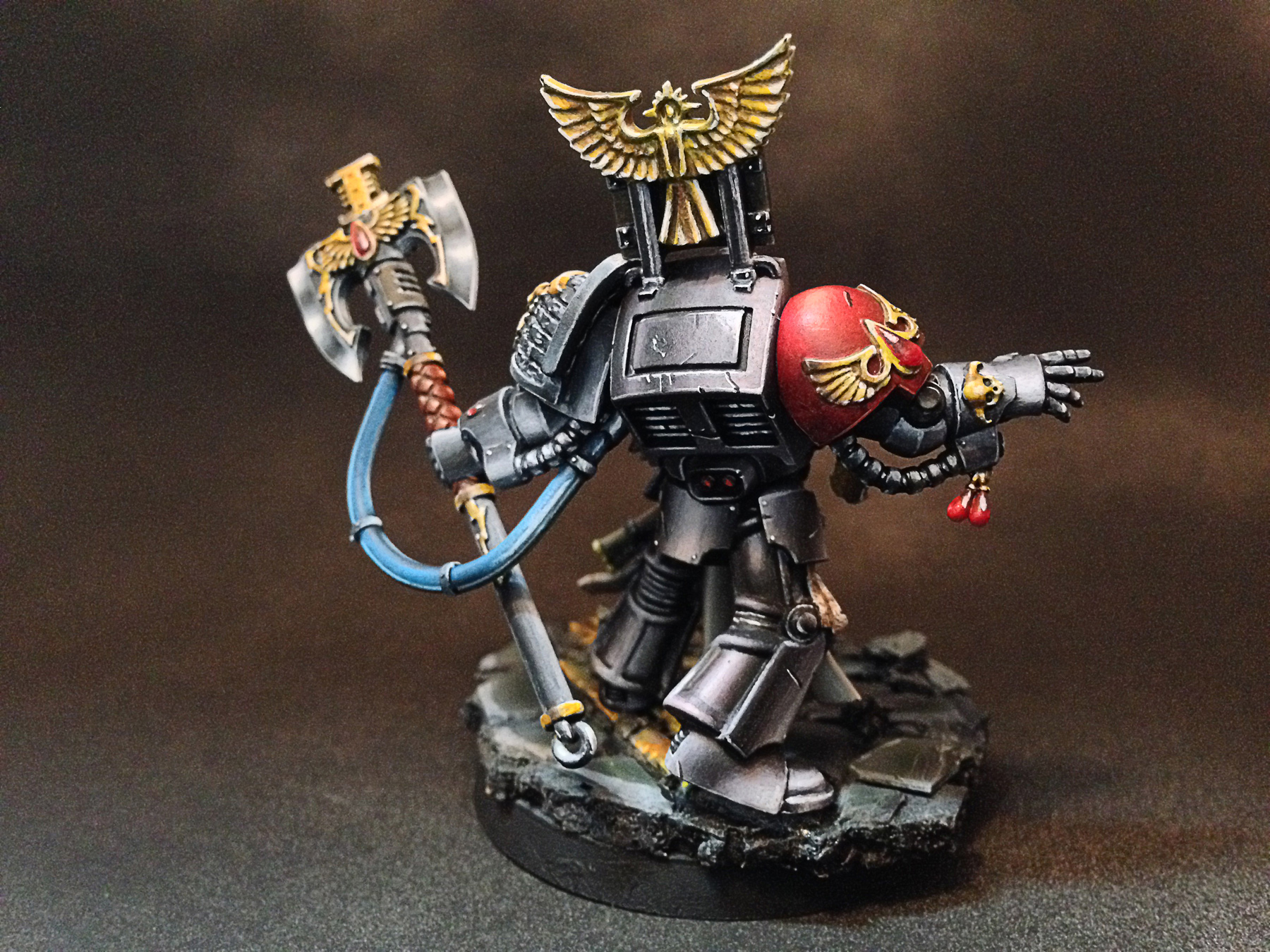 И так, миниатюра от производителя Gameswork Shop, по вселенной warhammer 40k, размером 28 мм, капеллан в терминаторской броне, материал смола, краски Vallejo game color, подставка - ничего нового.