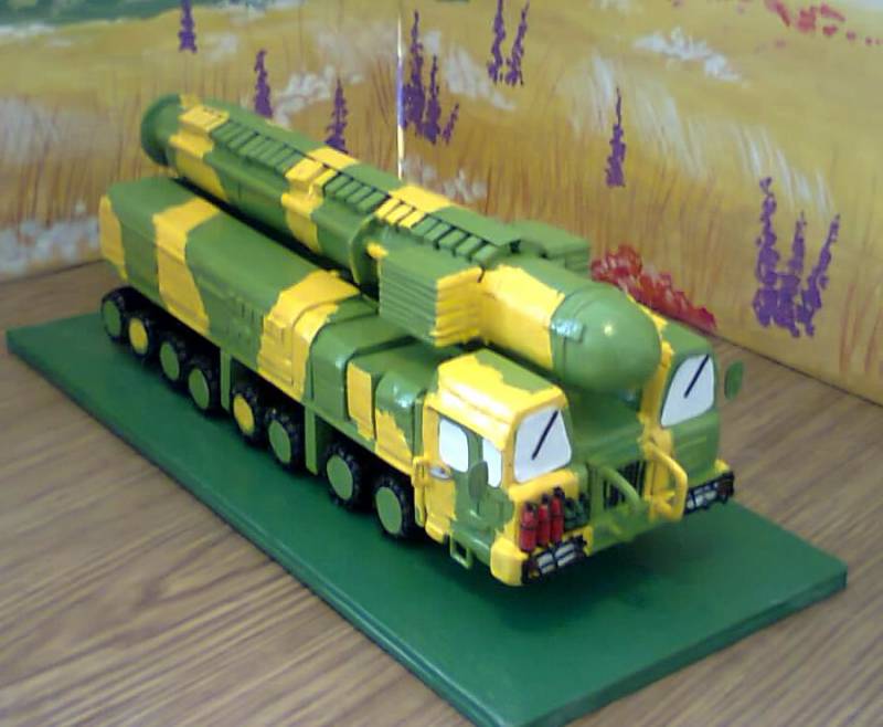 Ракетная установка ,,Тополь М". Материал фанера и картон.