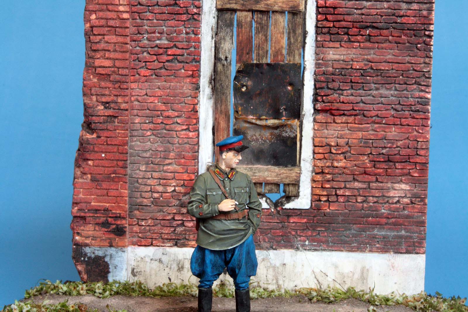 Тем не менее, даже словарь Даля не объясняет - как связано это выражение с лениво покуривающим офицером. Так что сюжет не ясен. А вот исполнение очень понравилось: и роспись самой фигуры, и растительность, и стена. Поэтому "докопаться" удалось только к названию.