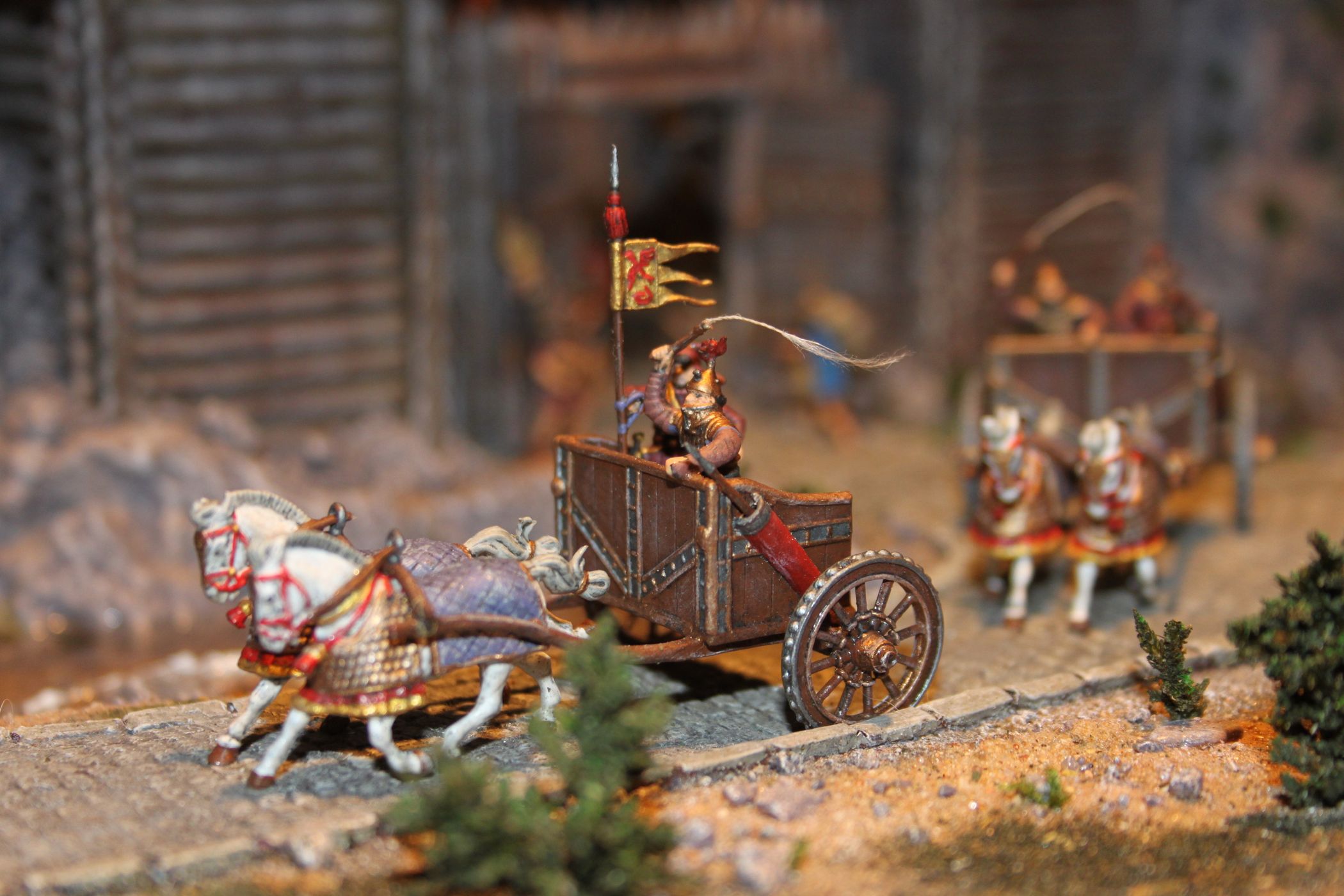 Диорама не имеет исторического аналога. Поэтому в ней пересекаются и римские легионеры и персидские колесницы и византийские конники и греческие легкие войны переделанные в мирных римских жителей.