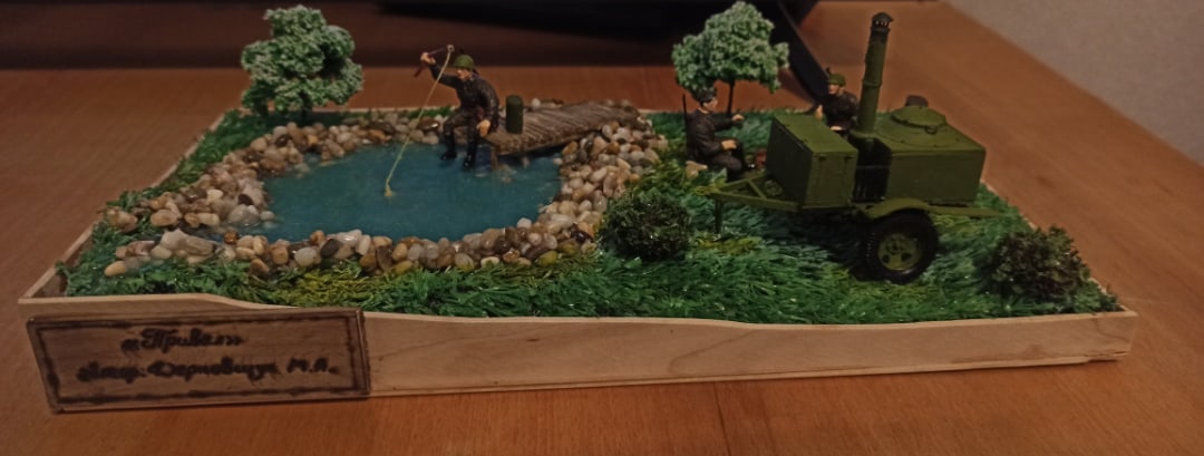 Ну, и про "джакузи". Не водится рыба в водоёмах размером 3-4 метра - просто не выживет. Конечно, если речь не идёт об искусственном аквариуме, где рыбу старательно кормят. Надо было сделать кусочек водоёма, выведя его на край диорамы. Тогда небольшого размера фрагмент воспринимался бы как часть огромного озера, в котором вполне можно выловить "щуку с руку".