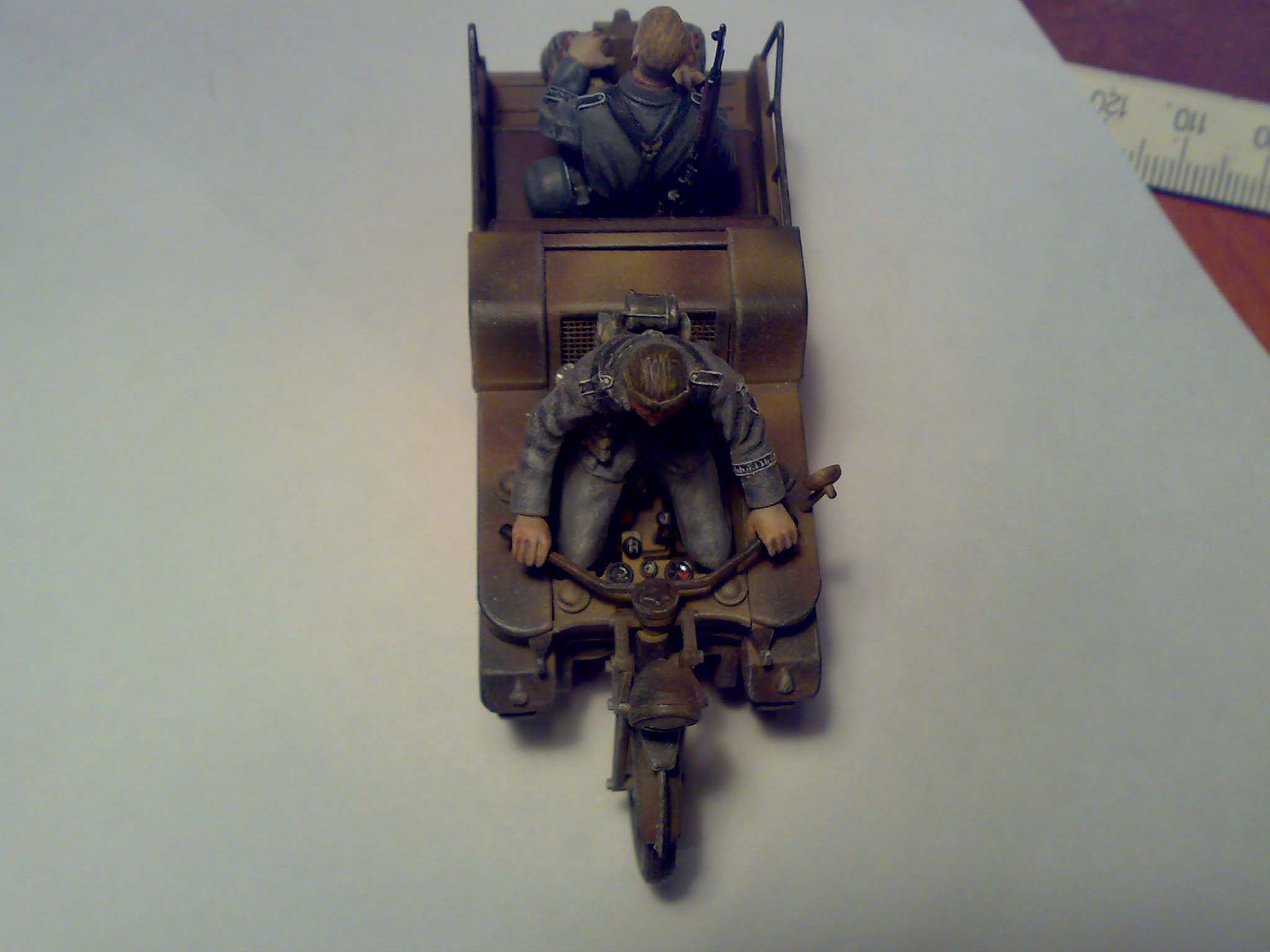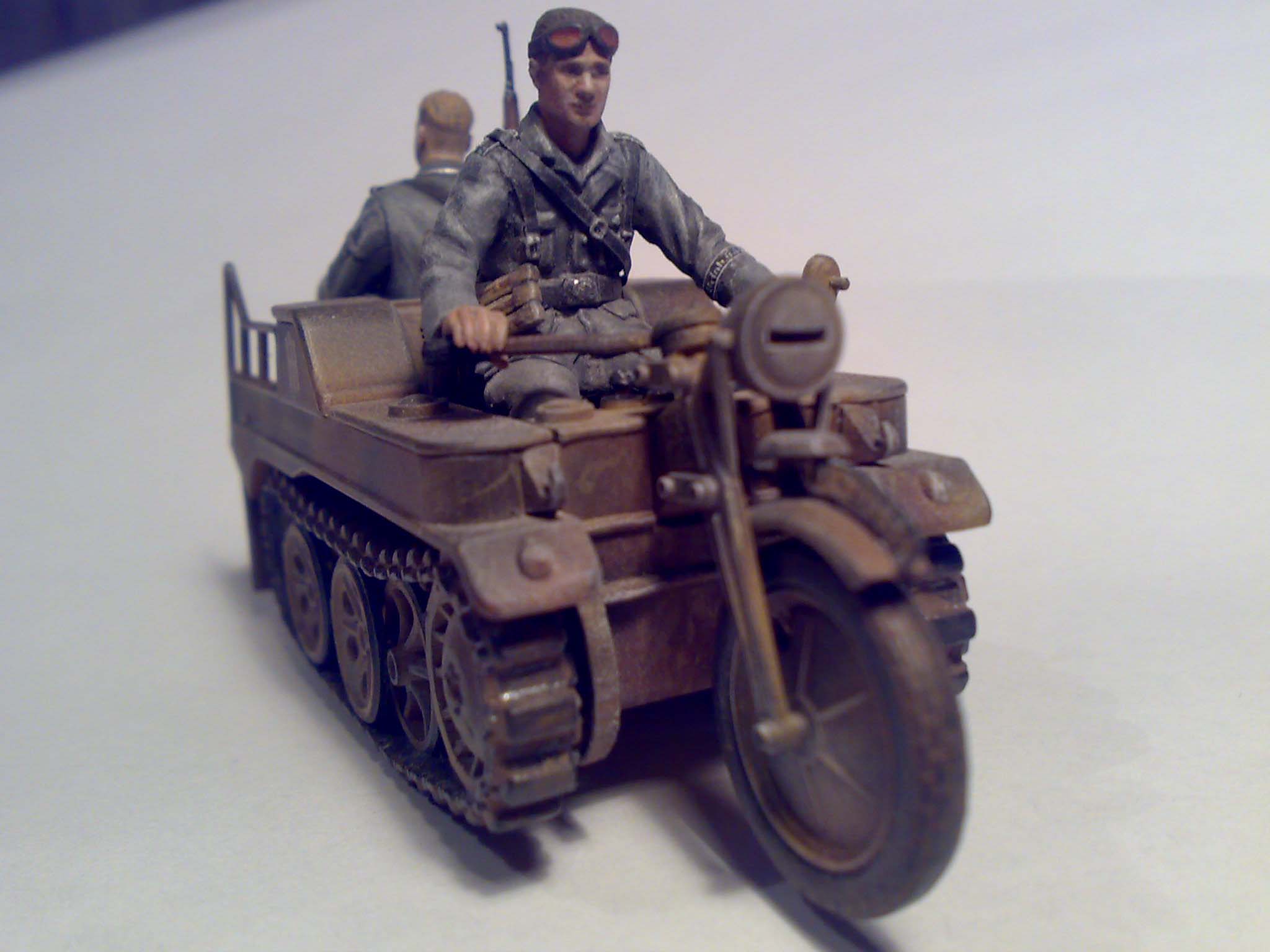 На самом Kettenkraftrad такие доработки: колесо отделено от крыла, доработано крыло, заново изготовлен номерной знак (передний), сетка позади водителя заменила ее имитацию, уменьшил толщину брызговиков и предал им слегка изогнутую форму. «Пассажир» собран из 2-х фигурок ICM.