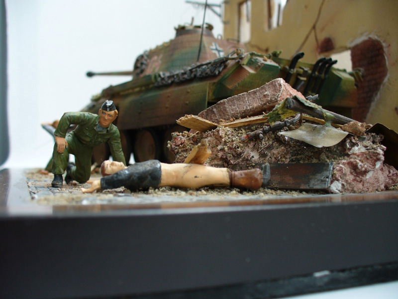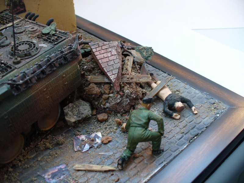 МОЯ первая диорама!!!!!!Нзвание "Бедняга..."масштаб 1/35 Основание (брусчатка)гипс,здание-гипс,все делалось самостоятельно!Танк ПАНТЕРА от "ЗВЕЗДЫ", фигурки -танковый экипаж от "ICM", в роли мертвого фрица танкист от "ЗВЕЗДЫ"с доработкой !!Красилось краской СУПЕР от"ЗВЕЗДЫ", фигурки- ТЕМПЕРА(тоже первый опыт)