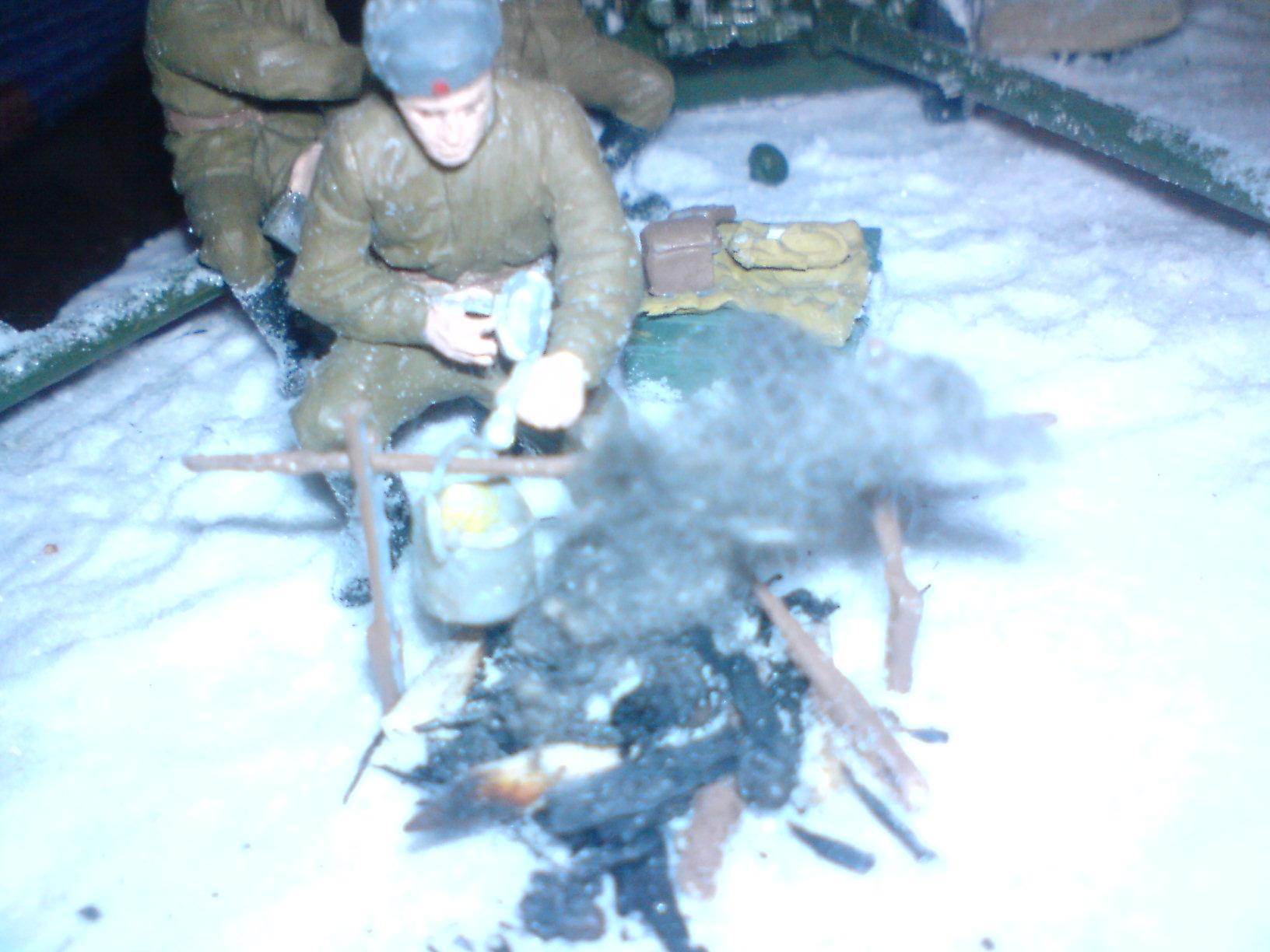 И в результате на диораме над костром висит закопчёная вата.