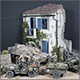 Что использовал при создании работы. Дом целиком создавался из пено-панелей от АК и бальзы. В качестве штукатурки использовал худ.акриловую пасту.Основание диорамы-пенокартон. Двери и окна,часть от миниарт а часть самодельные. Аксессуары в доме от различных производителей. Черепицу изготавливал из картонных коктельных трубочек.